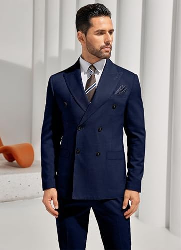 Mens Double Breasted Suit Slim Fit Solid Suit Jacket and Dress Pants 2 Piece Set Prom Wedding Suits for Men