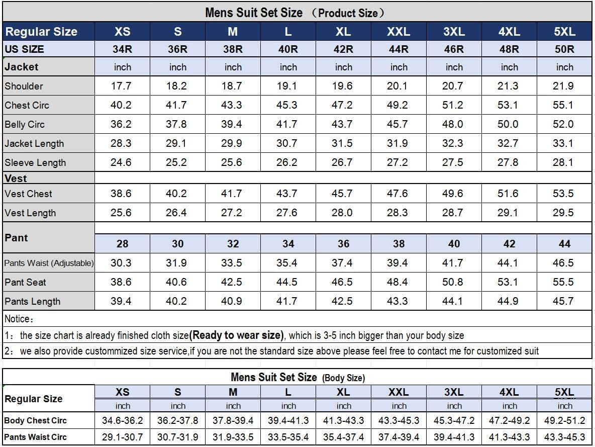 - Classic Style:Men’s 3 Pieces Tux Blazer Suit, Notch Lapel 2 Buttons Blazer Jacket with Flap Pockets; 3 Buttons Double Breasted Peak Lapel Vest & Elastic Band Casual Trousers