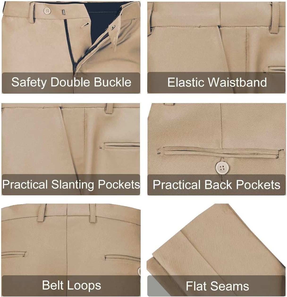 - 【Unique Design】: Suit Blazer: This two button single breasted blazer. Features notched lapels and double side vents. 4 cufflinks on each side. 1 false pocket with white trim. 2 flap practical pockets. 3 practical inside pockets. Suit Pants: Flat-front design. With elasticated waistband. Two slash pockets and two back pockets.