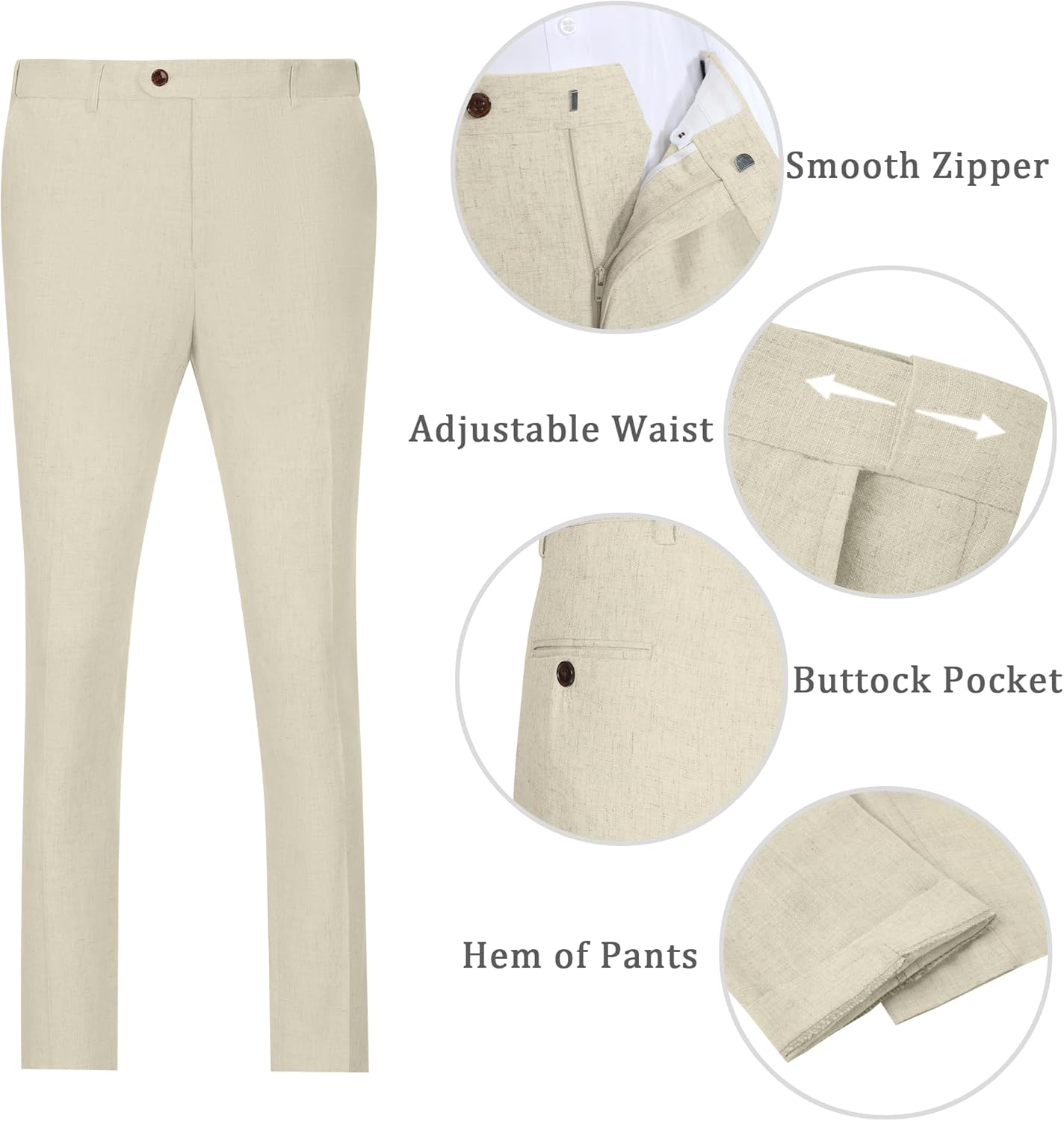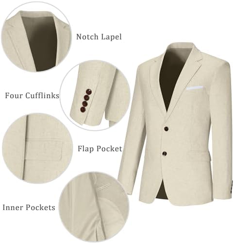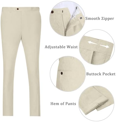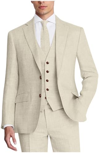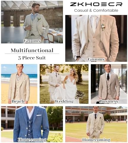 • Superior Fabric: High quality linen made, soft and skin-friendly. This 3 piece formal suits cut from 3d draping, is breathable, lightweight and comfortable, don’t shrink and fade. The slim fit style make you look elegant.