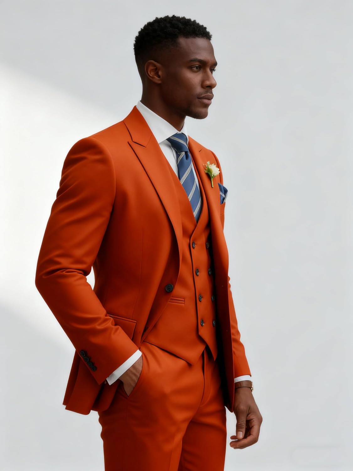 - Package:This Mens Suits 3 Piece Rusty Orange Double Breasted Suit Men consisting of jacket,vest and pant.This set gives you more options on wearing according to different weathers and occasions Like Formam Evening .And there may be some color differences between the monitor and the actual product,hope you can understanding.
