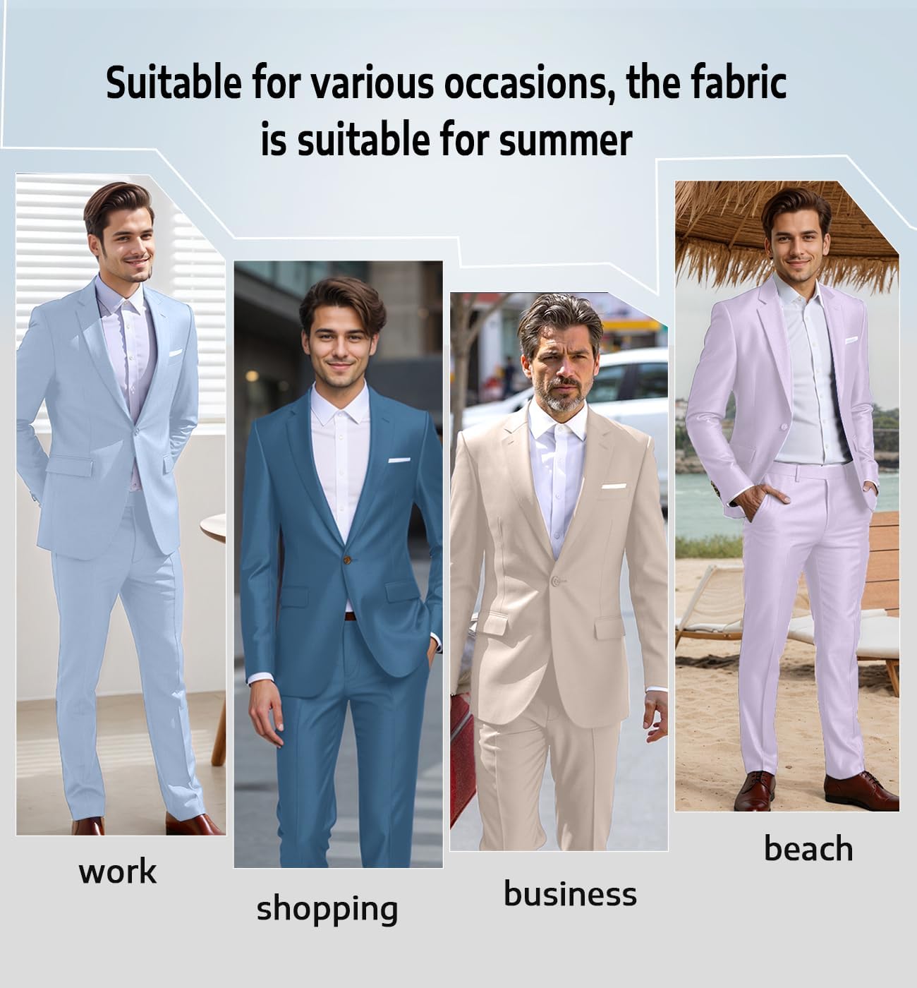 - 2 Piece Suit for Men Suitable Occasion: Dinner, Work, Business, Hosts, Wedding, Dating, Party, Prom, Halloween, Chorus, Graduation, Date, Fashion show and any other formal occasions, also as a gift to husbands, fathers, brothers and friends.