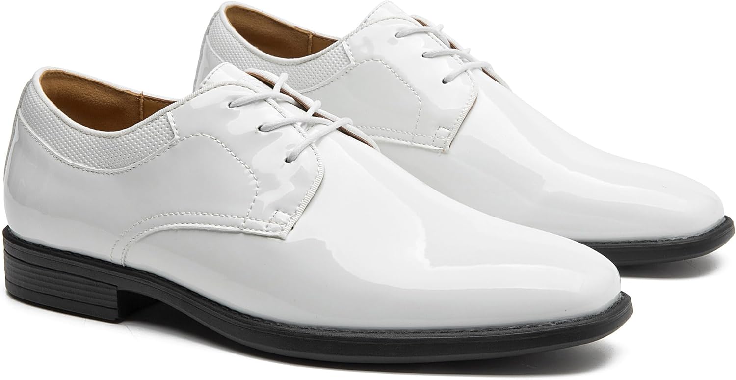 - True-to-Size with Secure Fit – The men’s patent leather shoes has classic lace-up closure that ensures a snug, customized fit in standard US sizes, available in classic black and white color,ideal for groomsmen, business formal, office,graduations,funerals,fine Dining,cocktail parties,casual or black-tie events occasions.