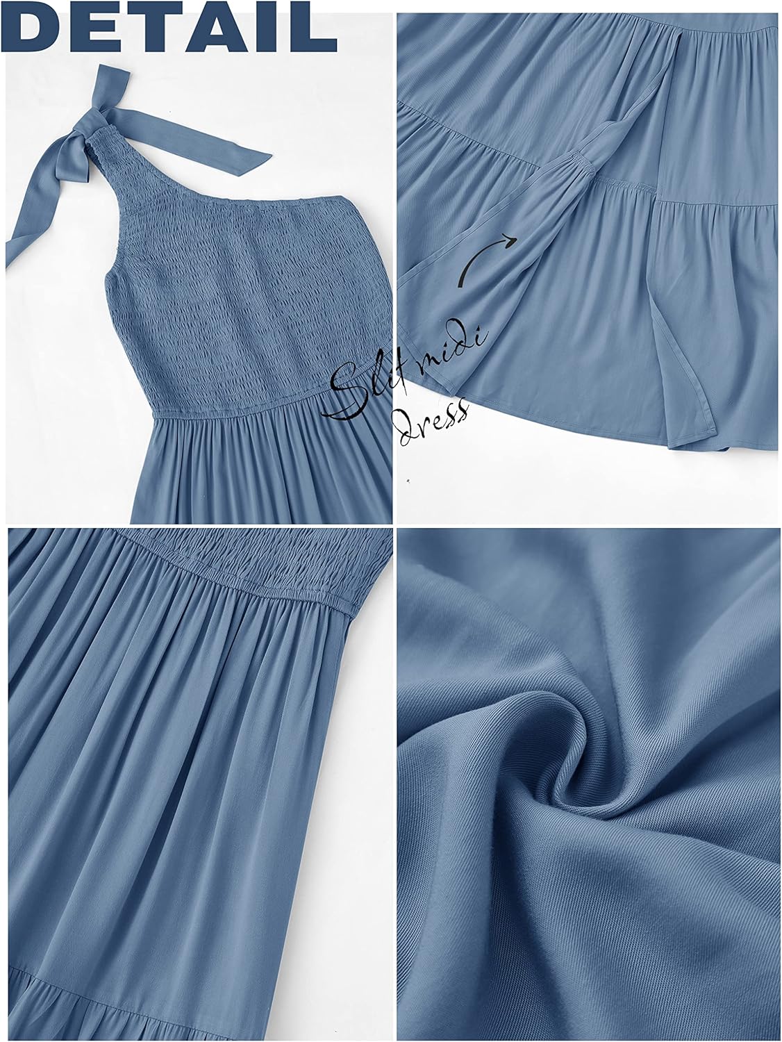 - Feature: one shoulder, sleeveless, tie knot one shoulder, stretchy smocked bodice, side split, high waist, flowy a-line tiered ruffle dress, solid color, summer boho style, dress for women 2025.