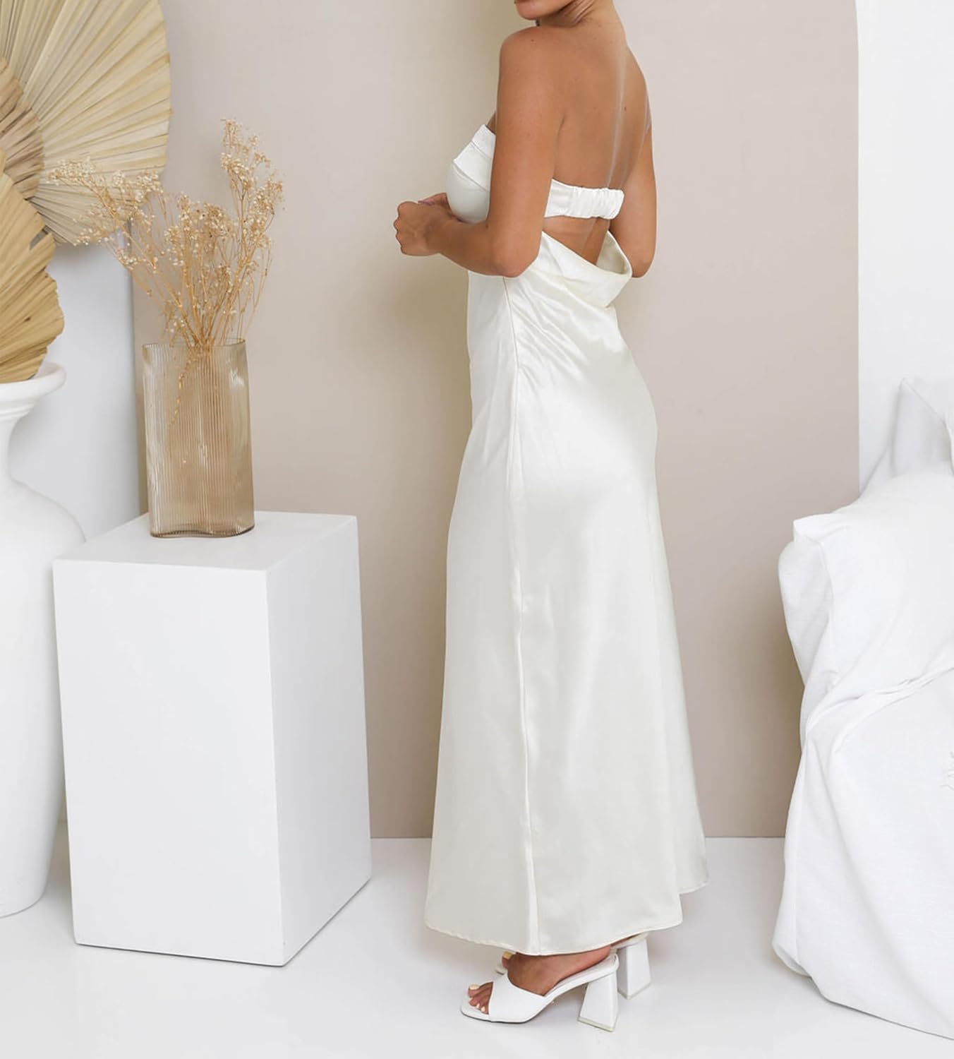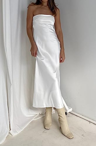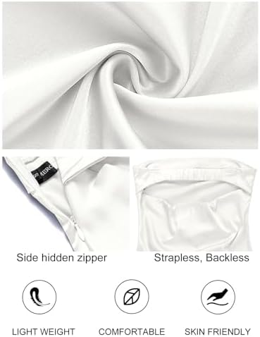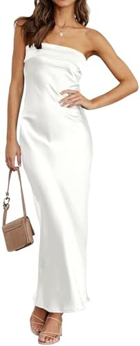 • Features: Solid color, strapless, backless, tube top maxi dress, cutout low back with a folded elastic band, a line, side hidden zipper, double lined in light color, silky, fashionable bodycon party dress.