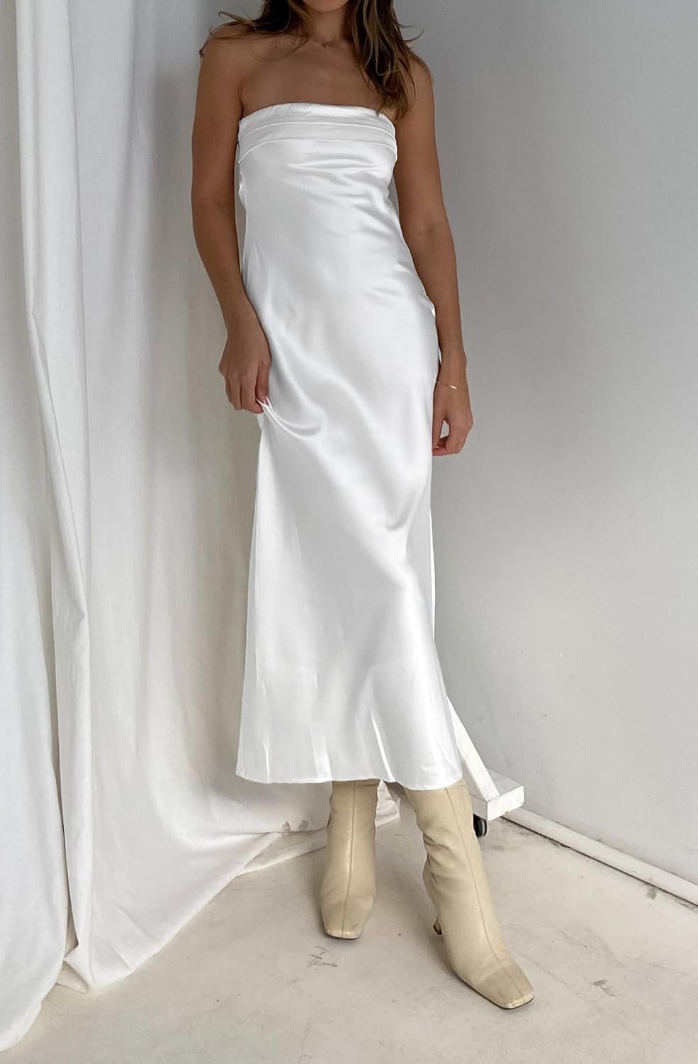 MEROKEETY Womens Cocktail Dresses Summer 2026 Satin Strapless Tube Bodycon Backless Wedding Guest Formal Party Maxi Dress