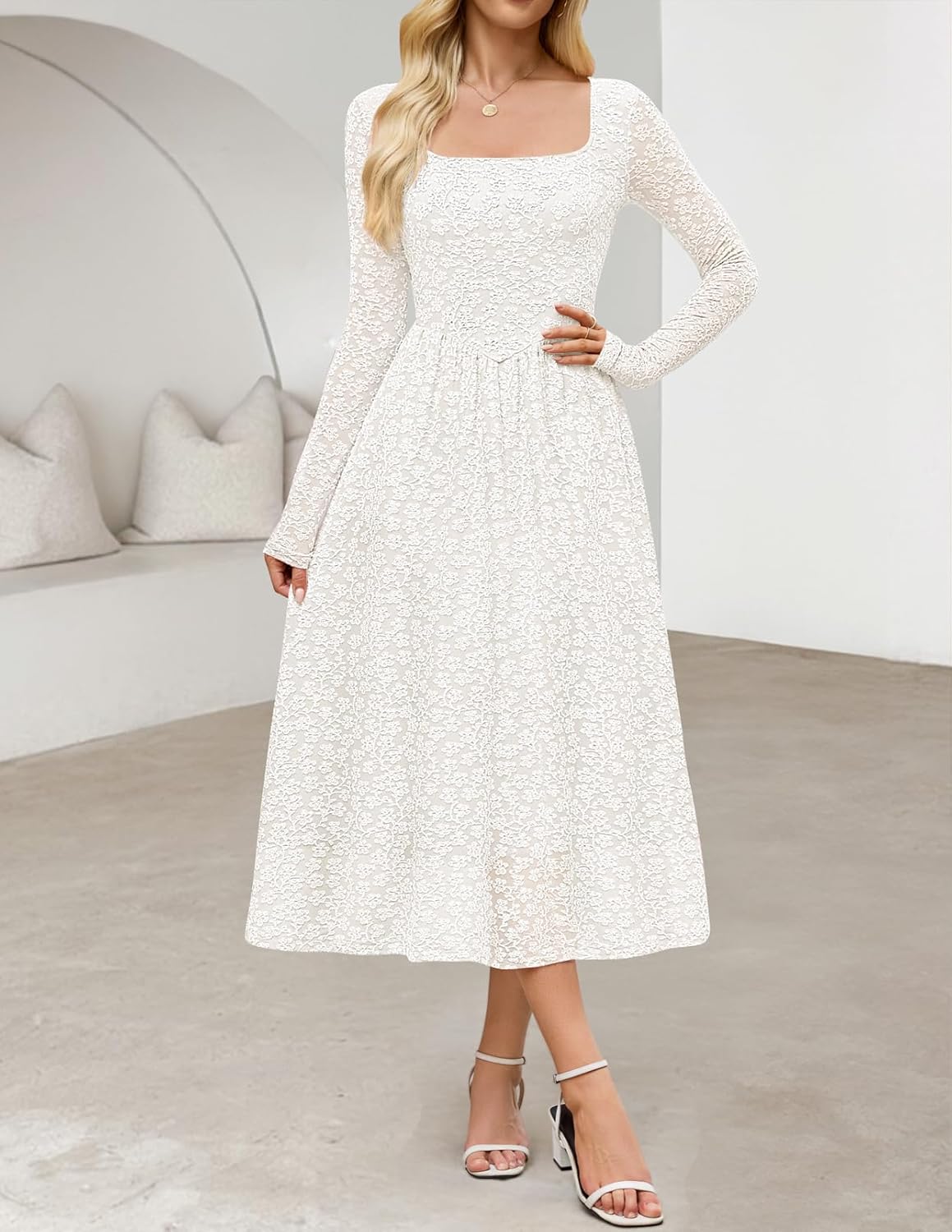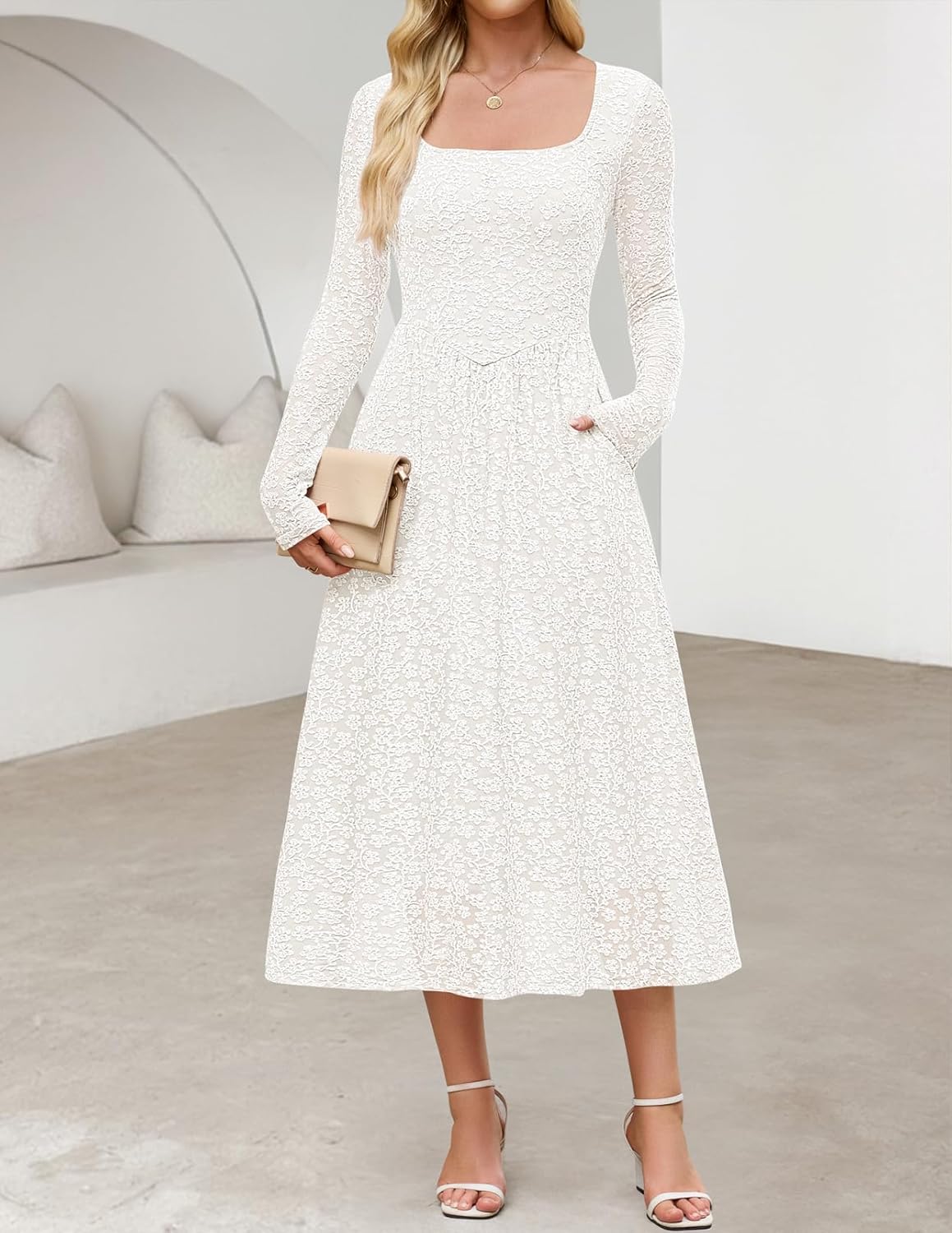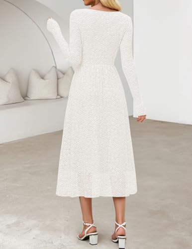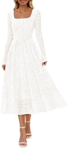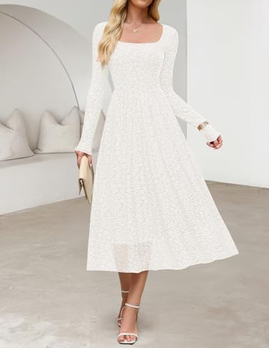 - Features: Long sleeve, square neckline, slim fit bodice, boho floral, a-line silhouette, mid length, two side pockets, curved detail on the front, pleated design, classic solid color, midi maxi dresses for women, fall winter dresses for women 2025