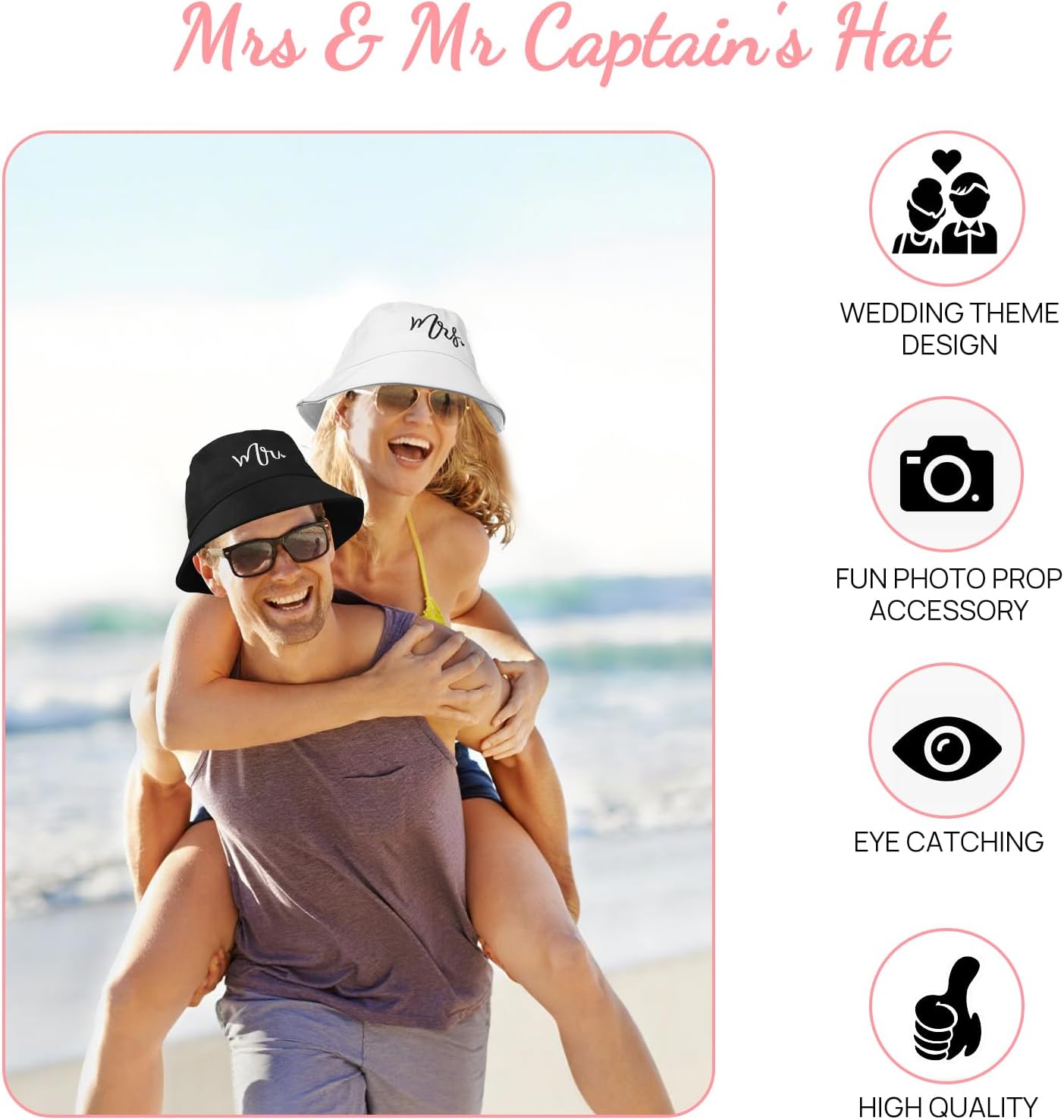 - Multi-Occasion Essential:Perfect for bachelor parties, bachelorette parties, honeymoon travel, couple photoshoots, and anniversary celebrations. These hats serve as both decorative props and practical accessories for all your romantic celebrations from engagement to honeymoon and beyond.