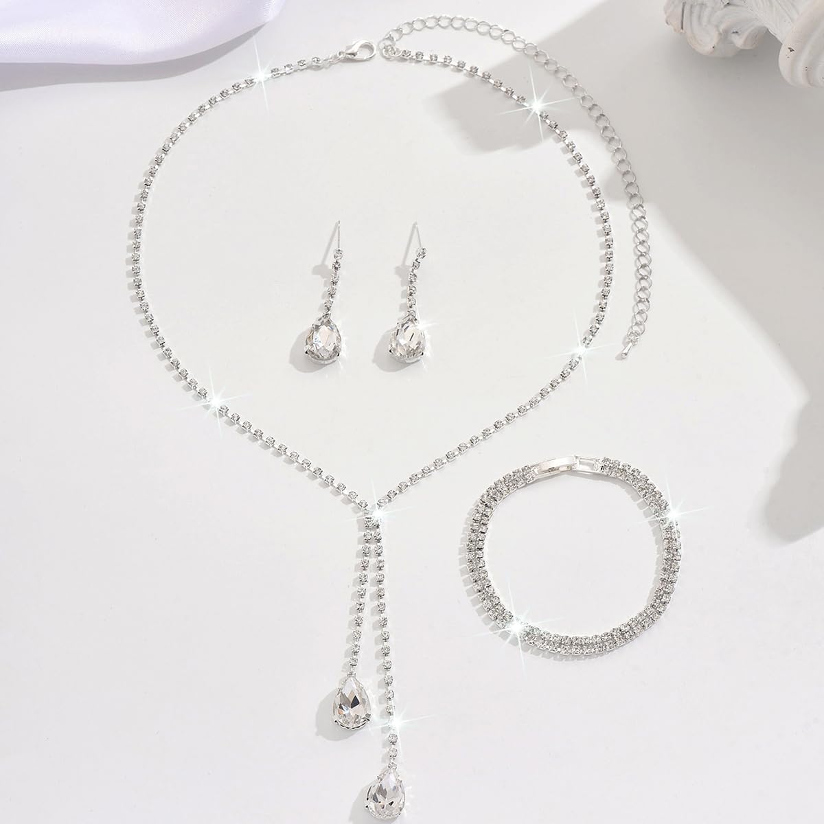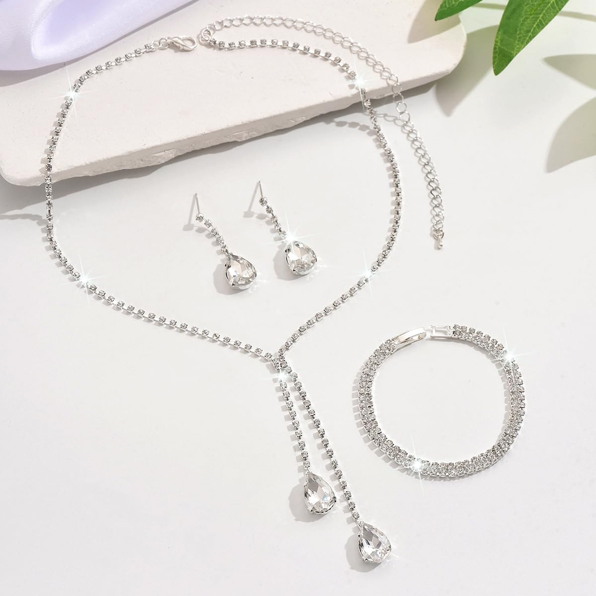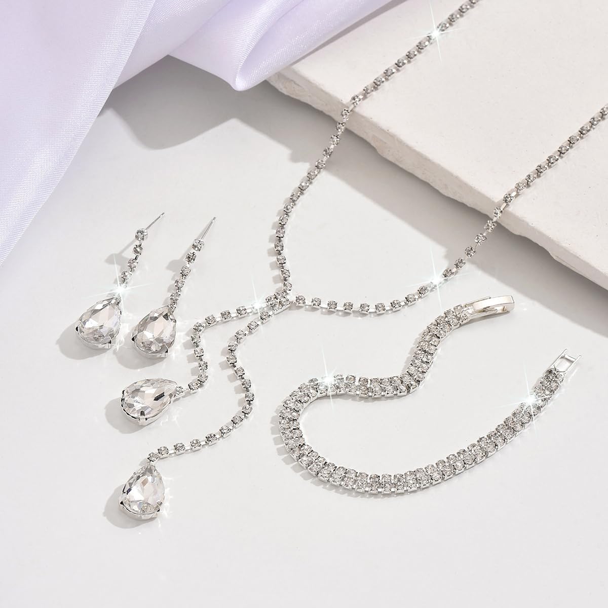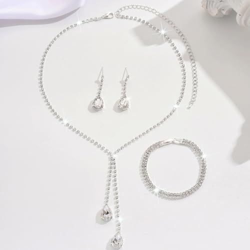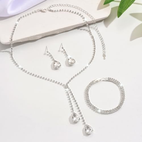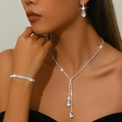 - Bridal Necklace Earring Bracelet Set:A pair earrings + a piece necklace + a piece bracelet, 3 types of wedding jewelry, personalized choker necklace size: 32cm+15cm; pendant earring length: 3.9cm; bracelet diameter : 15cm; lightweight, comfortable to wear. The perfect jewelry set for women.