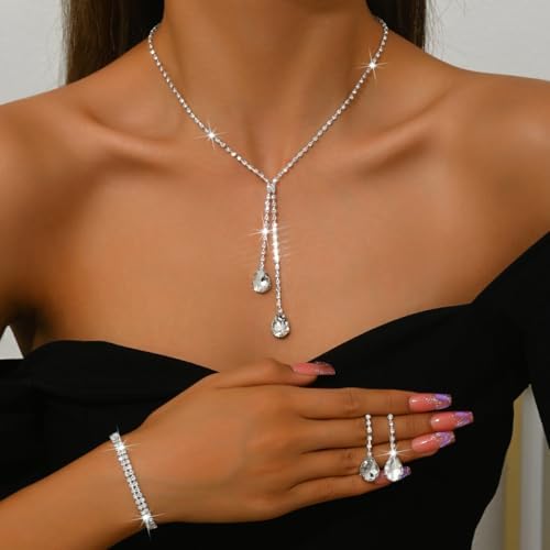 - Rhinestone Necklace :Our bridal jewelry set for wedding is made of eco-friendly alloy with sparkly rhinestones and crystal, well made, smooth, comfortable to wear, and not easy to tarnish and cause skin irritation, this special design is born to match the clothes and your unique beauty. Elegant rhinestone jewelry set ideal for weddings, birthdays, proms, or pageants, easily noticed.