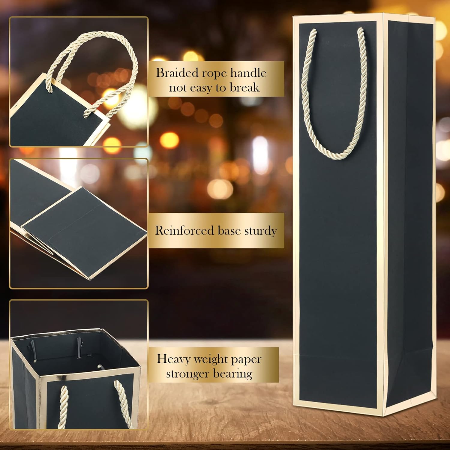 - Long Term Service: these wine bottle gift bags are made of quality kraft paper with ropes, and the bottoms are designed with extra cardboard paddings, which will hold the bottles firmly, not easy to break or deform, can meet your long term decoration needs