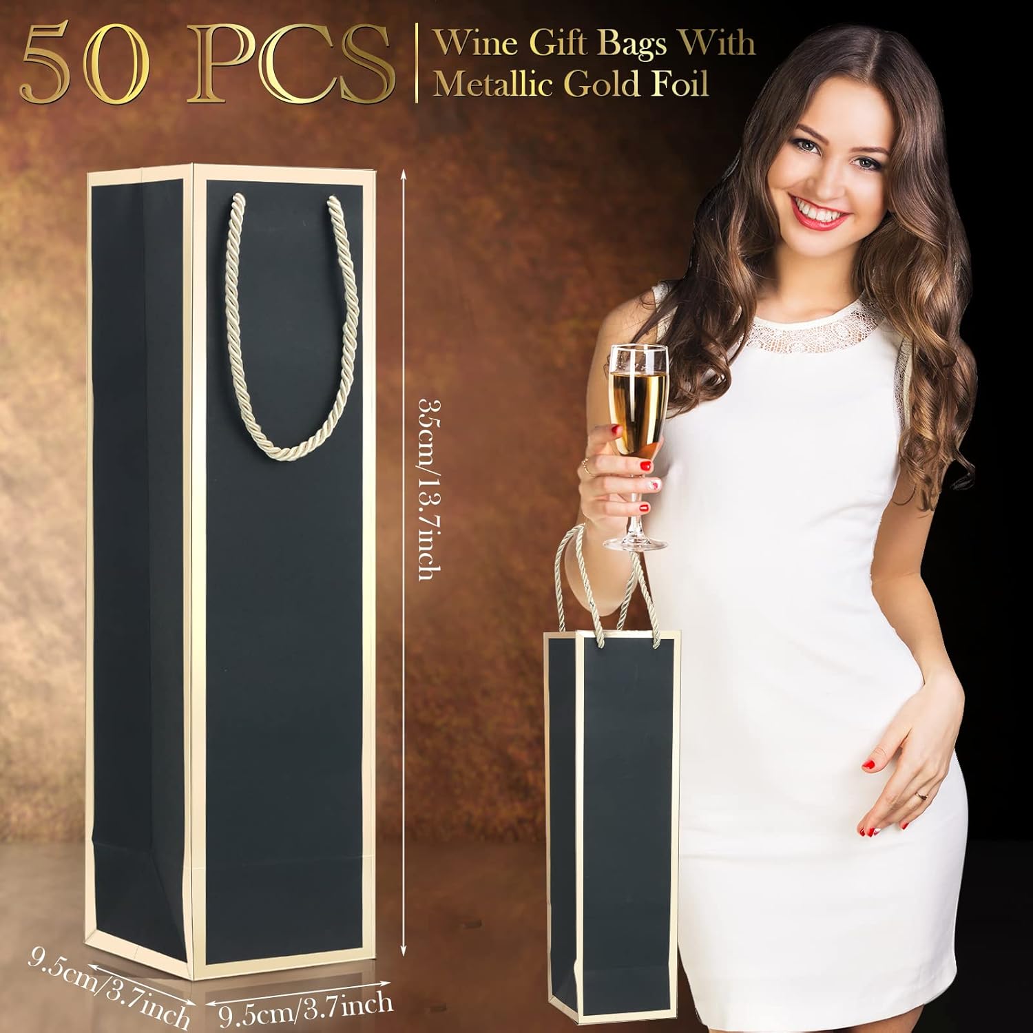 - Simple Yet Monotonous: the surface of the wine bag adopts black with gold foil frame, also with champagne gold colored rope handles, showing elegance and simplicity, suitable for many occasions