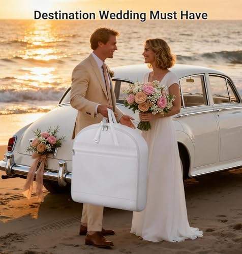 - 【2-in-1 Portable Design】 Fold it compactly to a carry-on friendly size for smooth transporting your gown to the venue. This wedding dress bag for travel ensures your clothes arrives at your destination weddings, formal events, or prom as pristine as it left. Don’t let a wrinkled dress or a lost earring add to your nerves. Folded Size: 23.5″ x 24″ x 5.5″