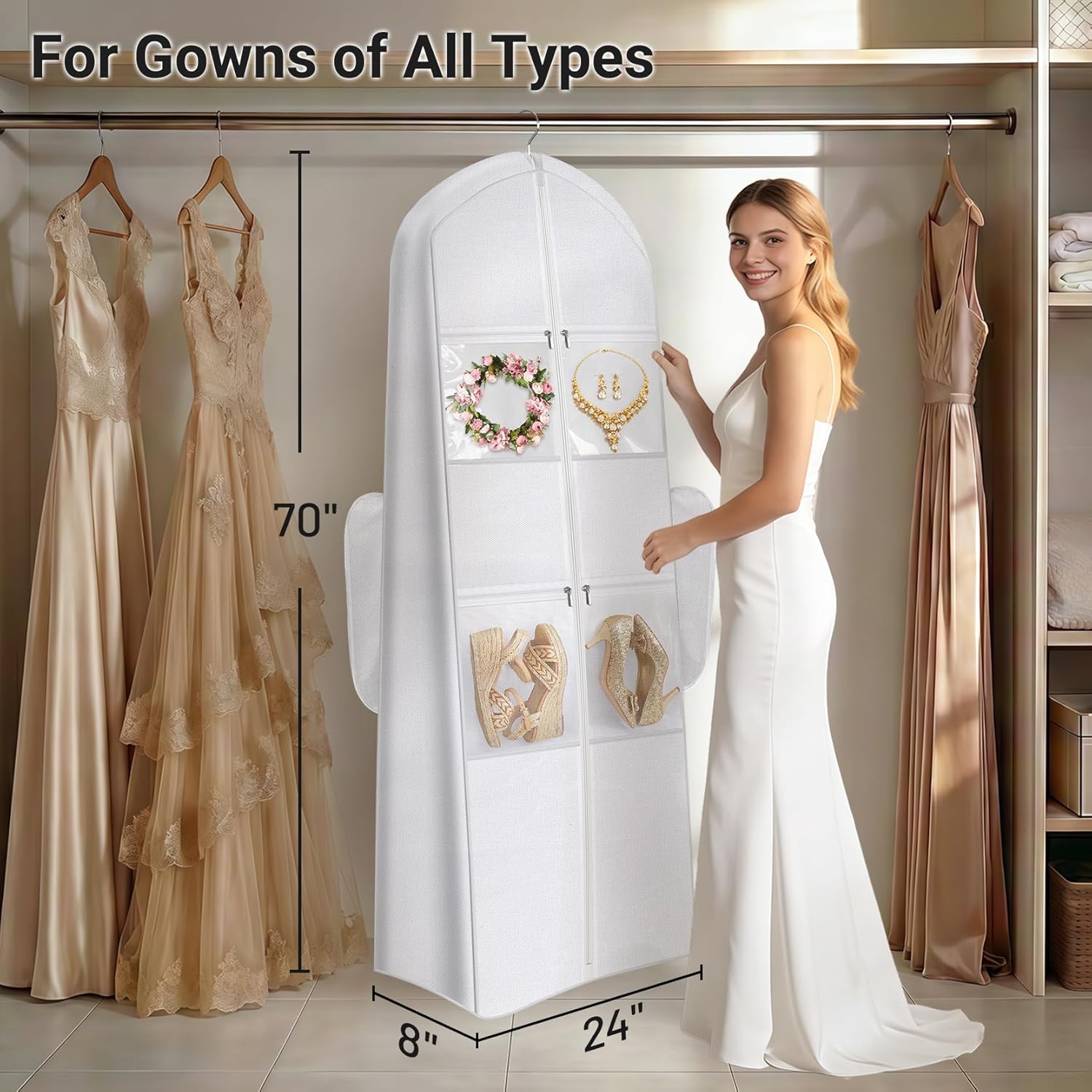 - 【Long Lasting Use】 Crafted from heavy duty, and water-resistant oxford fabric, it protects your precious dresses from dust, snags, and light, unlike flimsy alternatives that disintegrate. This wedding dress bags for gowns long is for the bride who values preservation and not just for the wedding day, but for years of cherished memories afterward