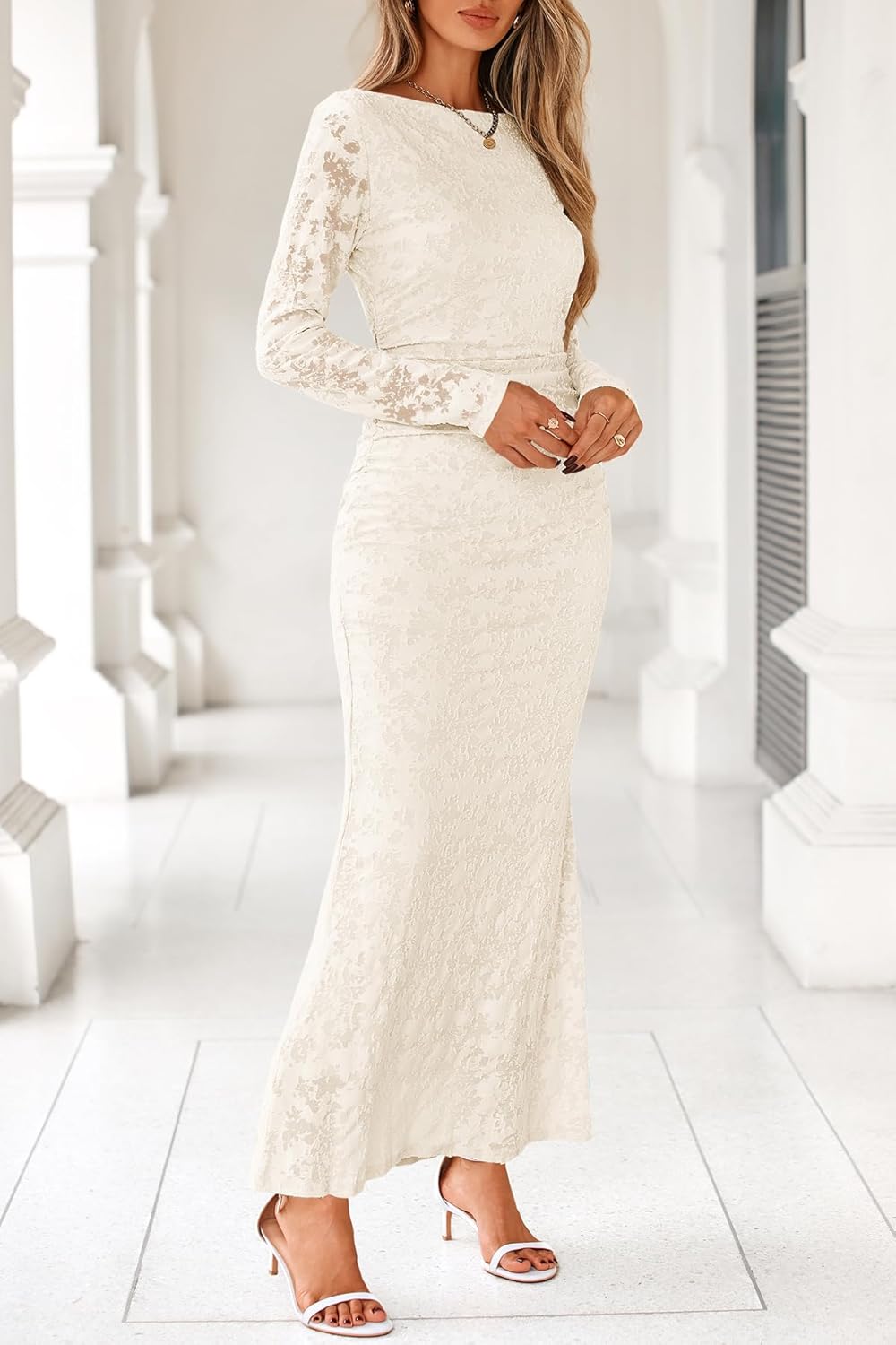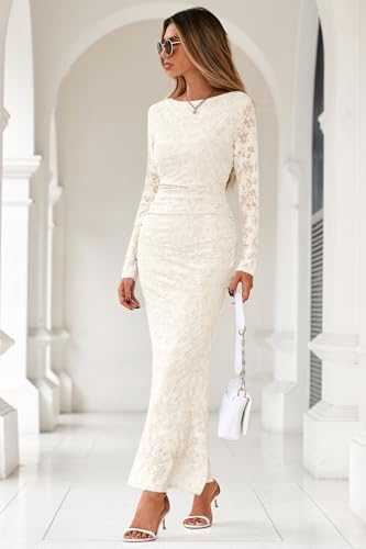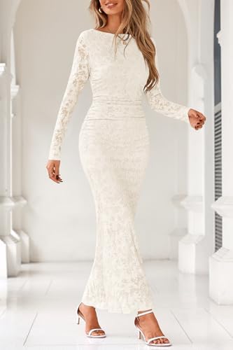 • STYLISH DETAILS: The elegant bodycon maxi dress easily slender your physique and optimizes your body proportion to show your soft femininity well. Unique floral textured adds a touch of style to the bodycon dress, flatters your figure, and ruched can hide your tummy. When you wear this long sleeve fall maxi dress, you will definitely be the focus of the crowd