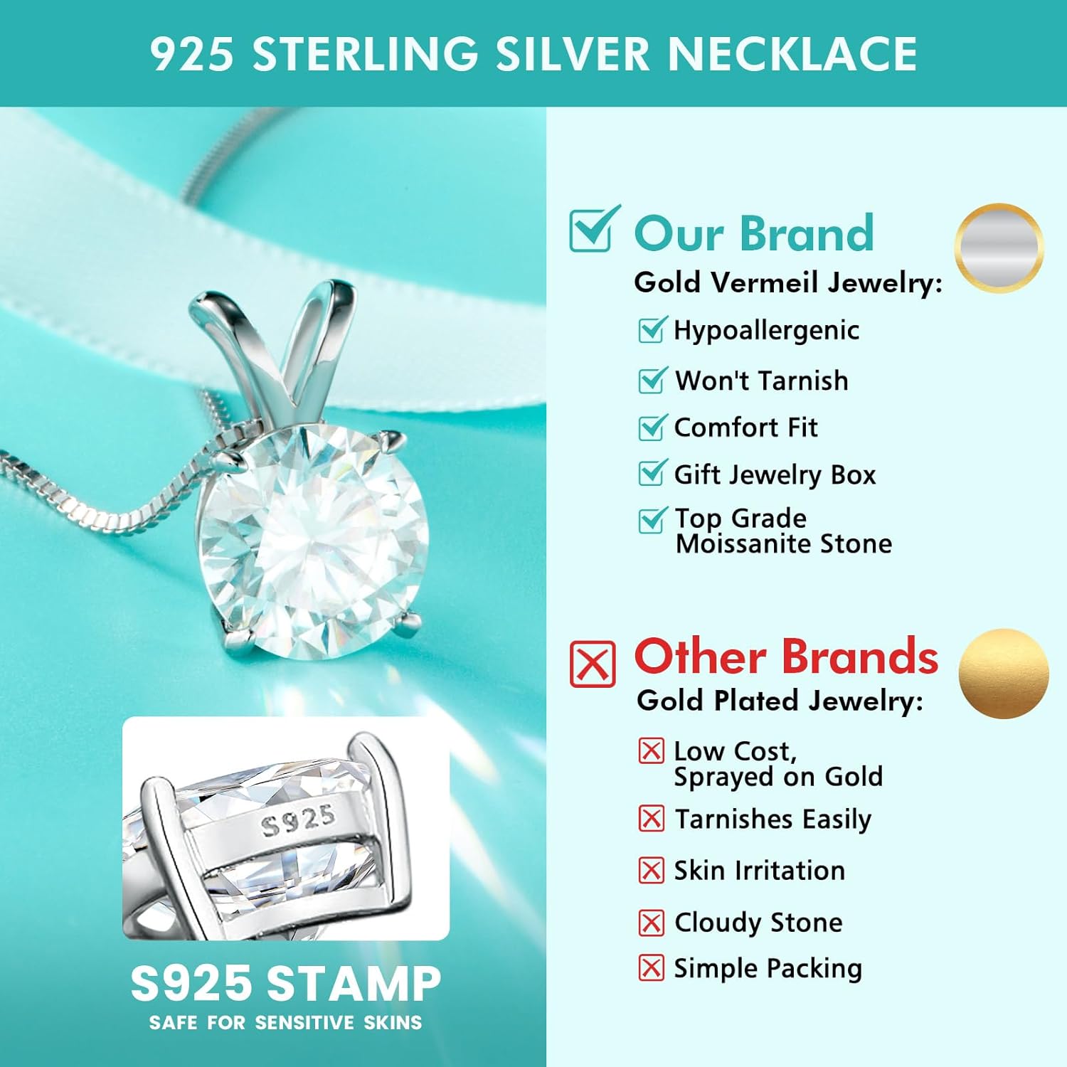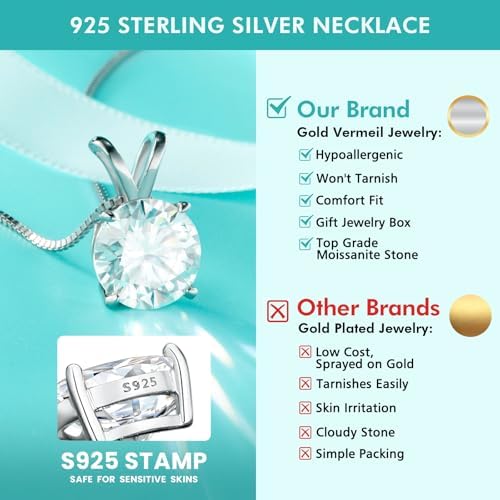 • 【Hypoallergenic & Durable Design】Gemalux lab created diamond solitaire pendant is mounted in solid 925 sterling silver, coated in 14K gold for extra brilliance. The 4-prong setting keeps the moissanite stone secure, while the hypoallergenic finish makes it safe for sensitive skin. A reliable, elegant piece for any special moment