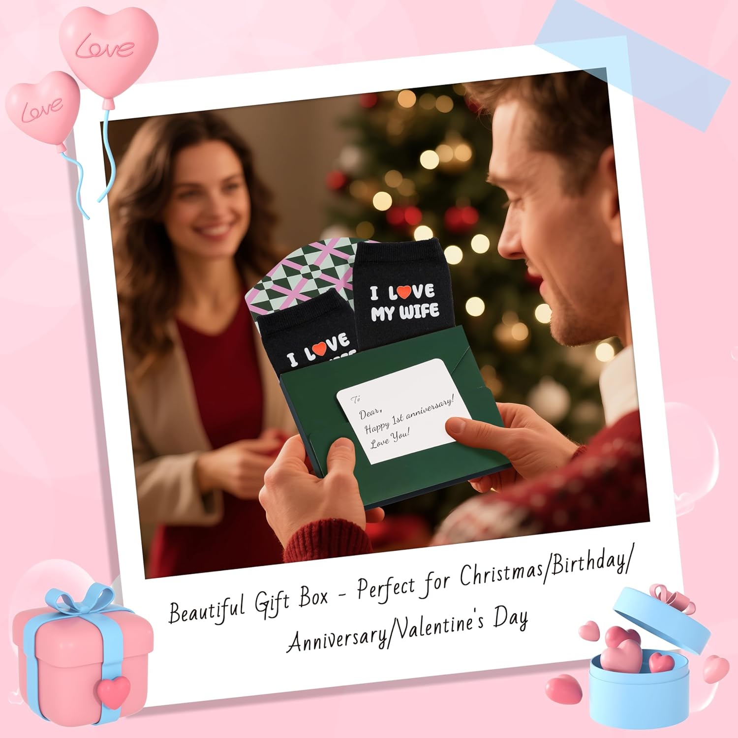 • 【Unique Design】These romantic socks for him feature the phrase “I Love My Wife” along with a heart design, offering a simple yet interesting design. It’s a charming way to express deep affection while adding a touch of fun and warmth. This warm design not only stands out but also brings a smile in everyday life, making it a perfect way to share your love