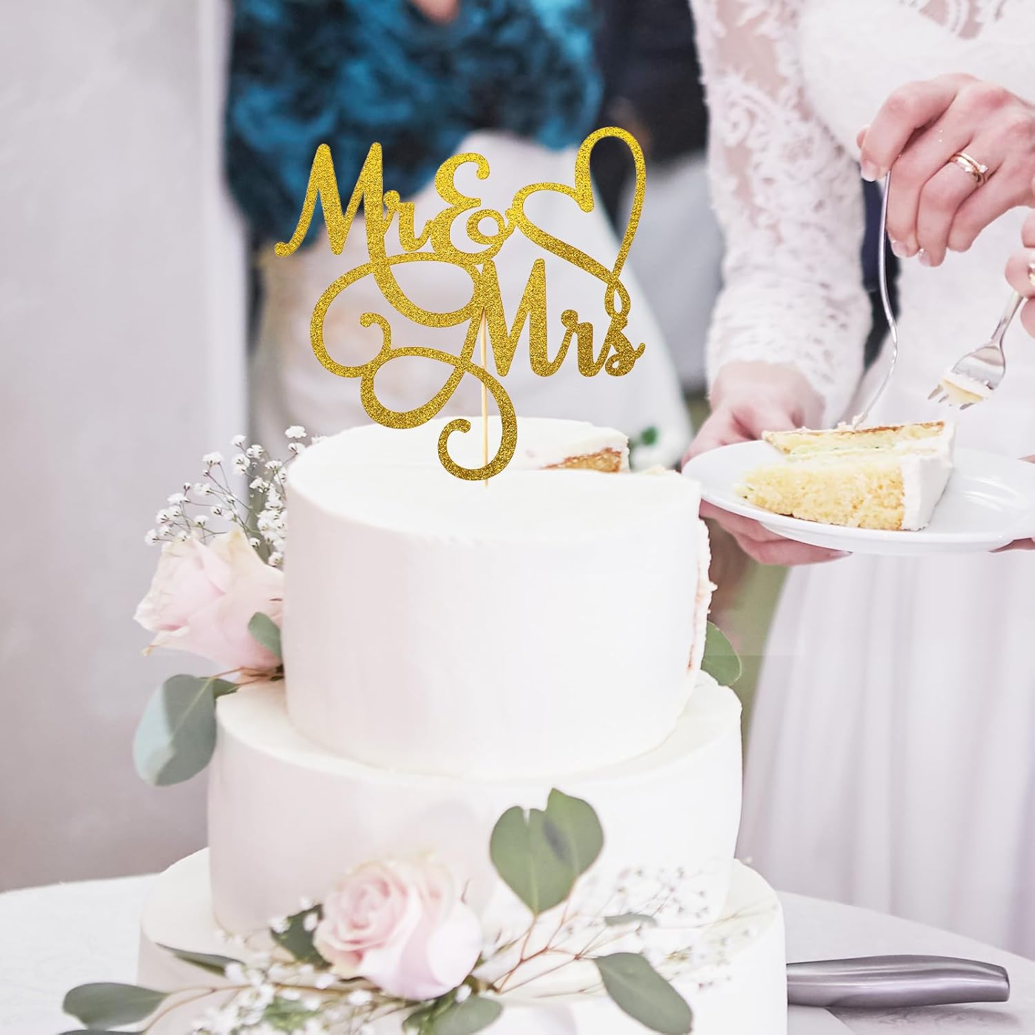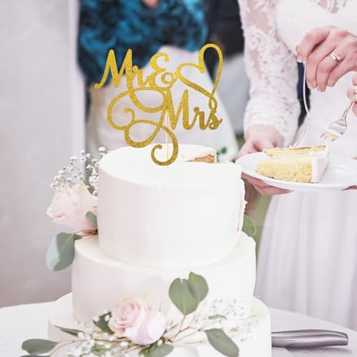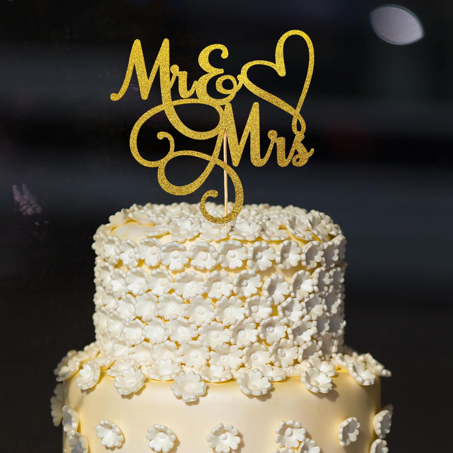 - Elegant Wedding Accent: Featuring classic wedding cake topper design in shimmering gold, this mr and mrs cake topper adds sophisticated charm to wedding cakes, engagement parties, and anniversary celebrations.