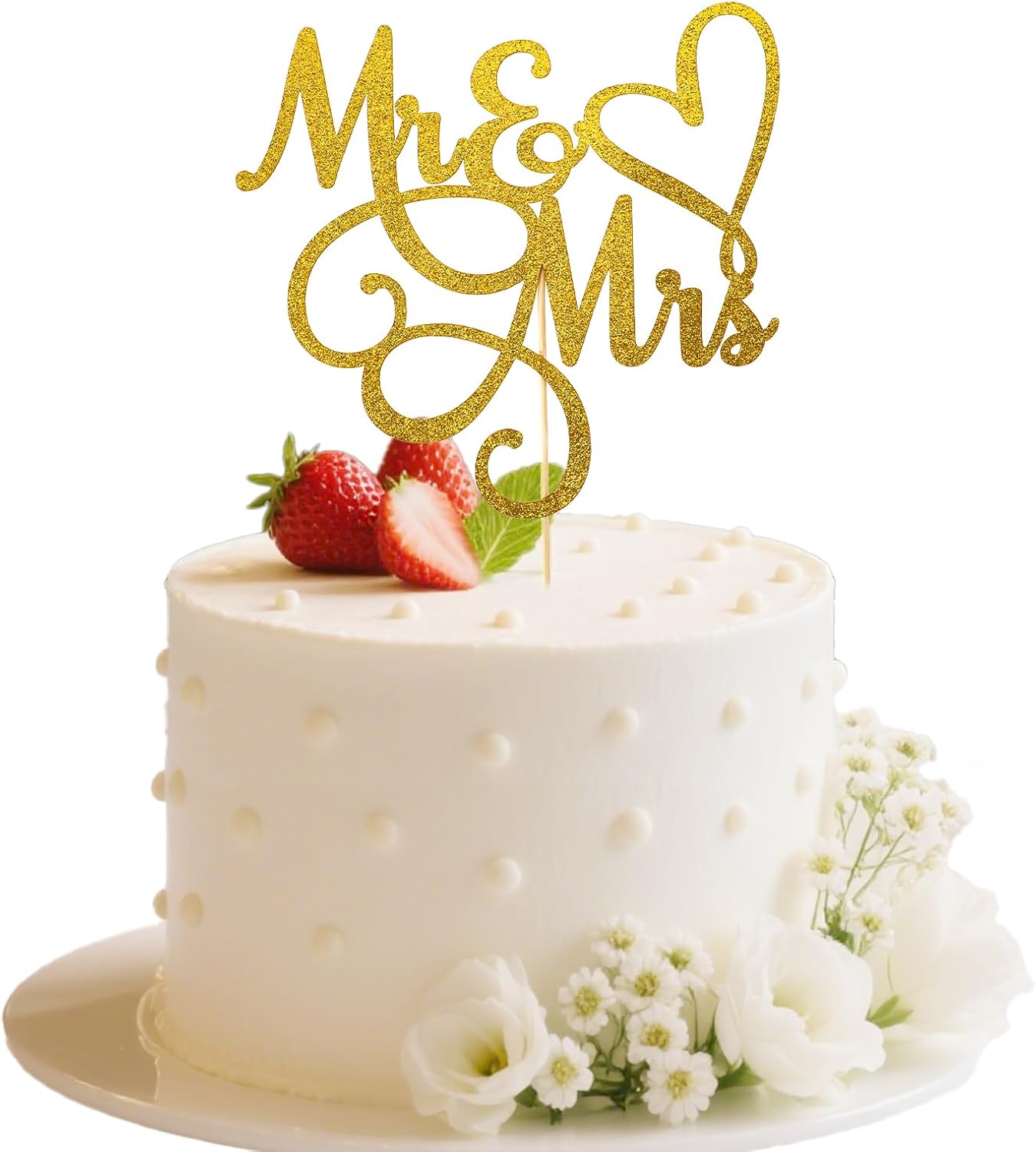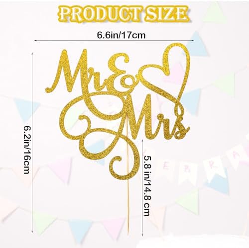 Mr & Mrs Glitter Cake Topper – Elegant 6.66.2 Inch Wedding Cake Decor (Gold)Make your wedding cake shine with this stunning gold glitter “Mr & Mrs” cake topper! Measuring 6.66.2 inches, this elegant decoration features high-quality glitter-coated letters that create a dazzling focal point for your wedding cake, cupcakes, or dessert table. The thick acrylic material ensures durability while maintaining a lightweight profile that won’t sink into your cake. Perfect for bridal showers, anniversaries, vow renewals, or romantic parties, this topper adds instant glamour to your celebration. The classic script font with delicate glitter accents complements various wedding themes from vintage to modern chic. Easy to use – simply insert the attached wires into your cake for a secure display that lasts throughout your event. The luxurious gold finish pairs beautifully with white fondant, naked cakes, or colorful dessert displays, making it versatile for different pastry styles. Also works wonderfully as a photo booth prop, sweetheart table decoration, or keepsake after your special day. Comes ready-to-use in protective packaging to ensure it arrives in perfect condition for your wedding, engagement party, or milestone anniversary.Specifications:Category: Cake decorationColor: GoldMaterial: Paper, WoodFunction: Wedding/Engagement/Wedding Anniversary Party DecorationProduct Size: 6.66.2 inches/17 16 cmStick Size: 5.8 inches/14.8 cmPackage Size: 8.6 6.2 0.19 inches/ 22 16 0.5 cmPacking Method: BagNet Weight: 0.38oz/11gGross Weight: 0.38oz/11gPacking List: 1 Mr&Mrs, 2 Sticks