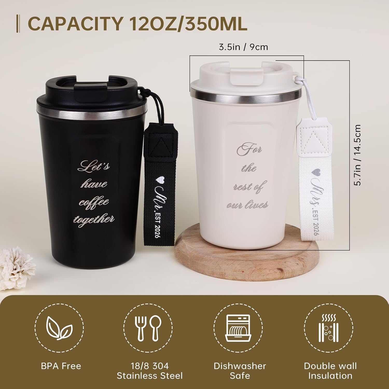 - Eternal Love Mark: The coffee cup is engraved with “Let’s have coffee together, for the rest of our lives”, every sip is a vow of love. Let this pair of coffee cups accompany you through every morning and evening, become a witness to your love, and like every cup of coffee, never cool down.