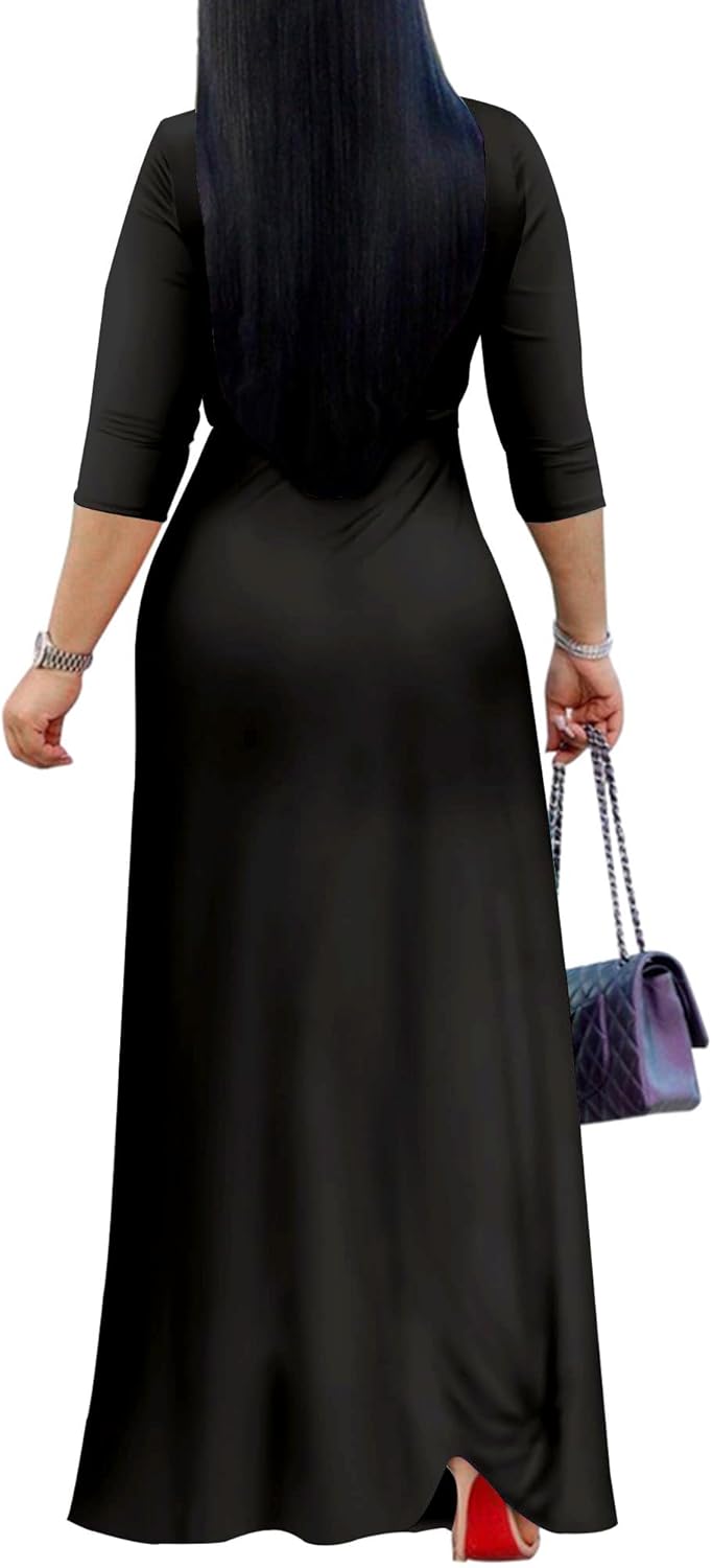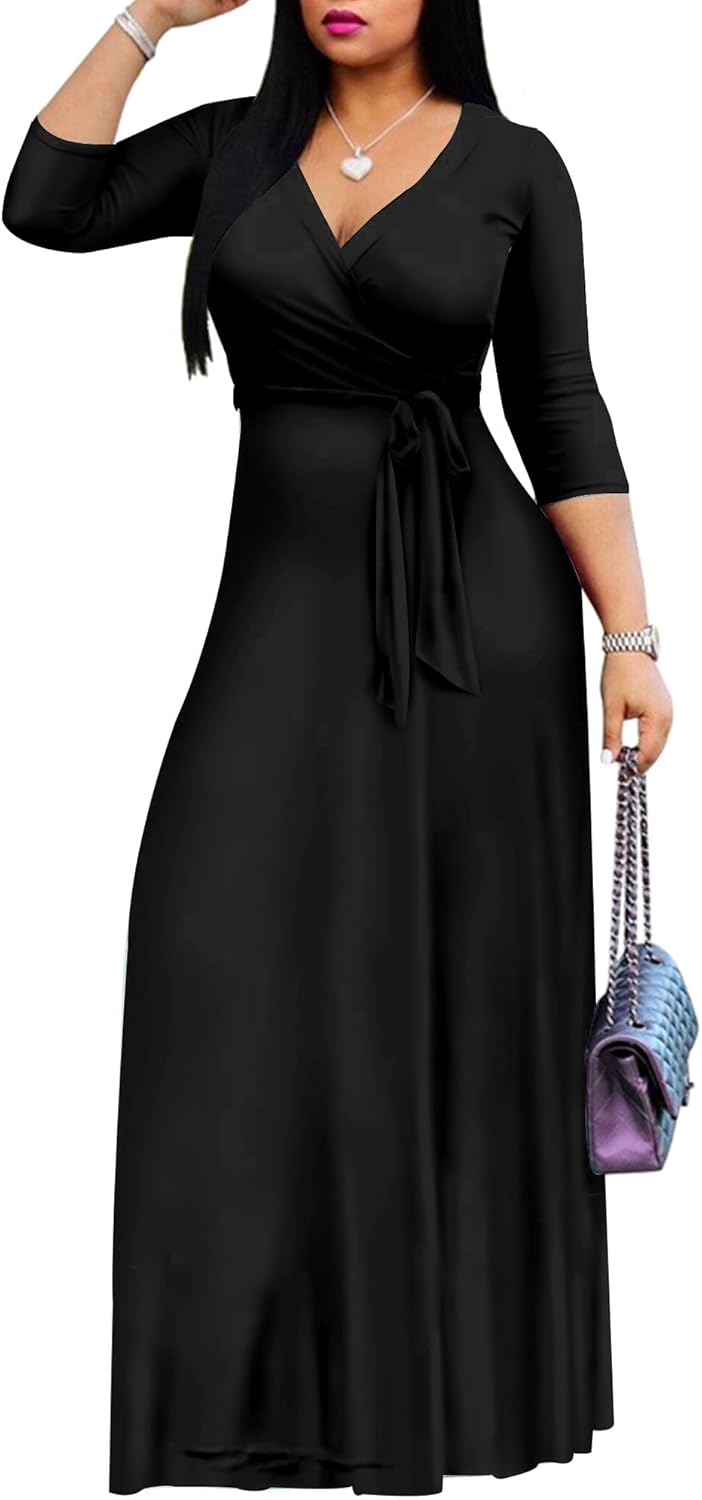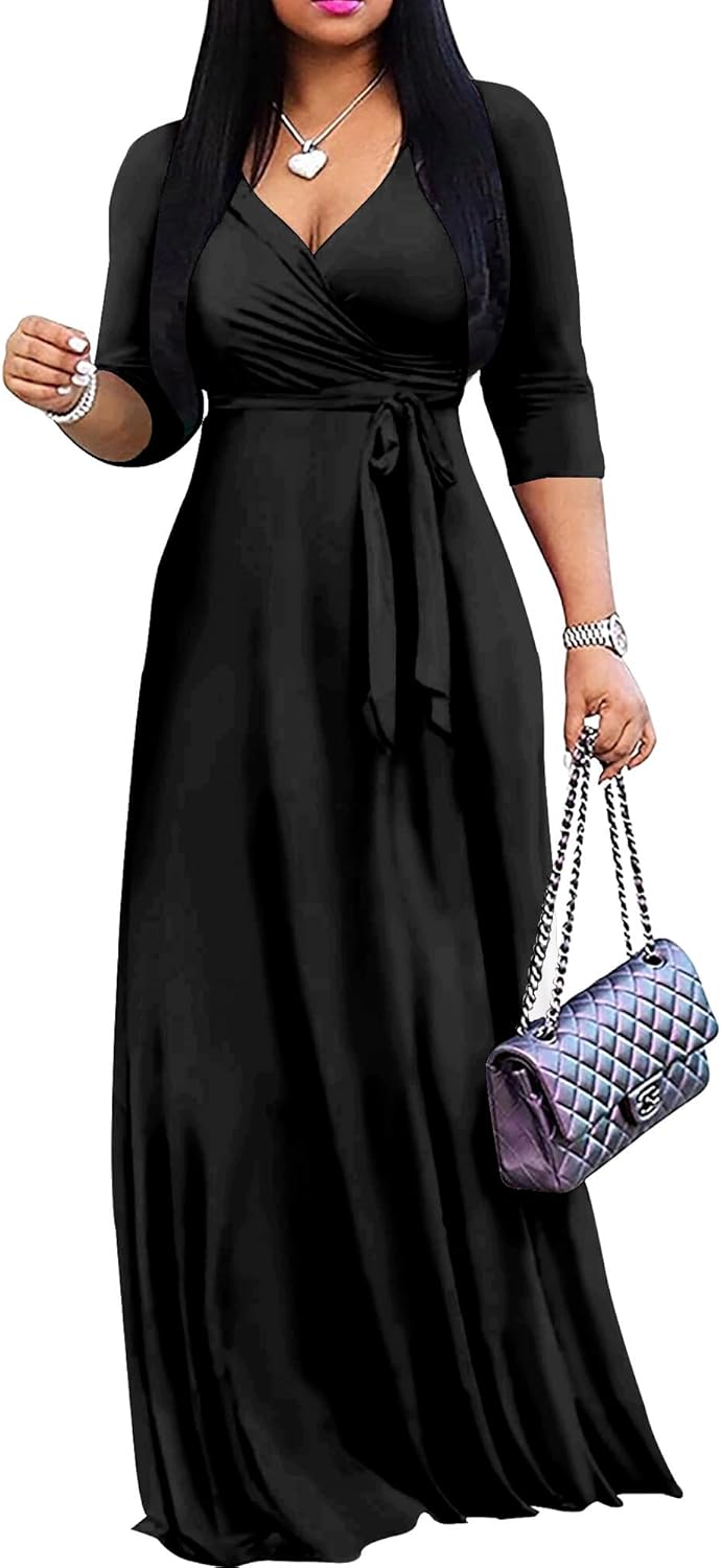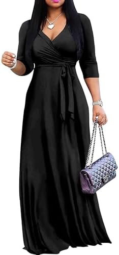 • Feature: Oversize Maxi Dresses for Women V Neck 3/4 Sleeve Belted Wrap are Flattering Soft Stretch Formal and Elegant