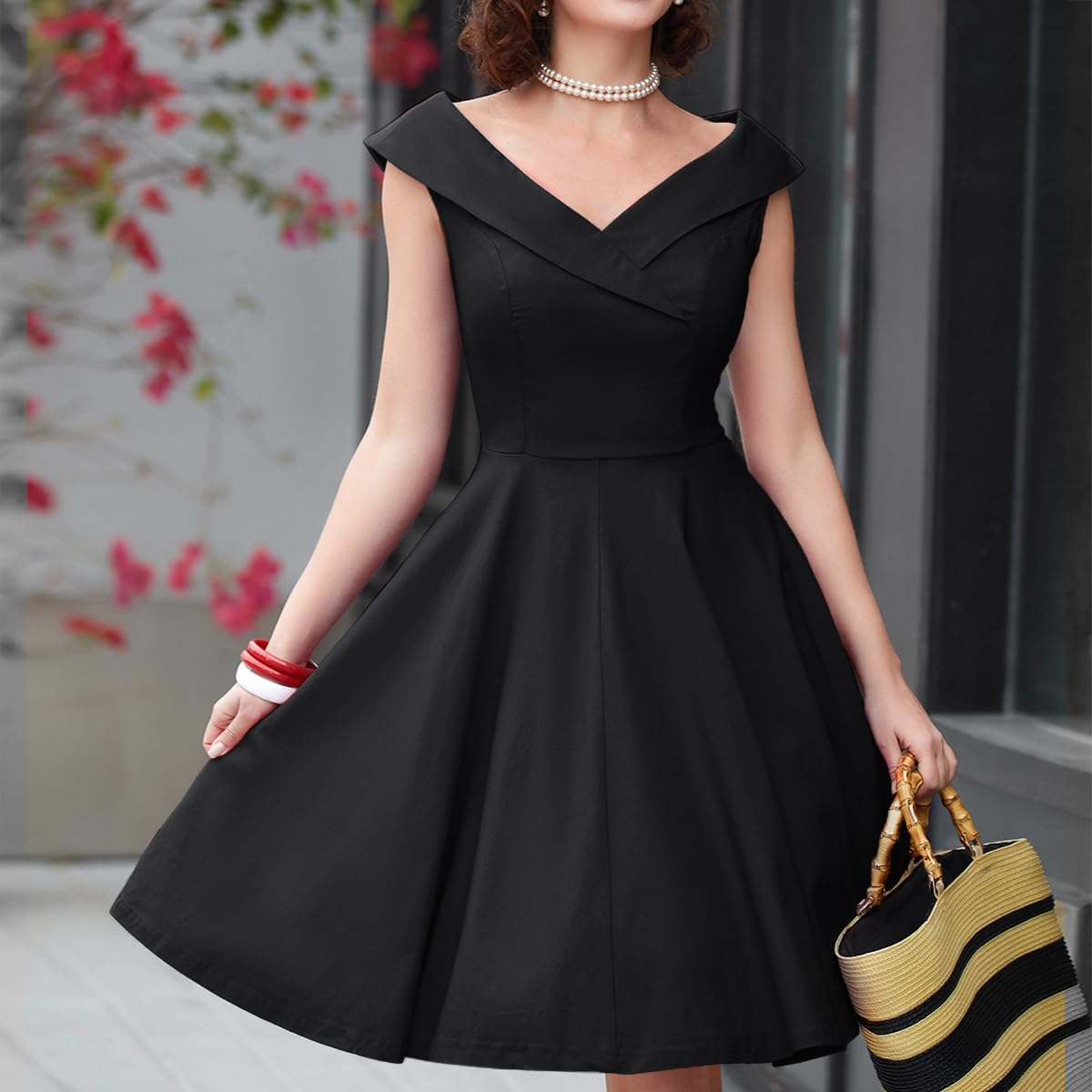 MUXXN Womens 1950s Retro Vintage Sleeveless V Neck Midi Cocktail Swing Dress