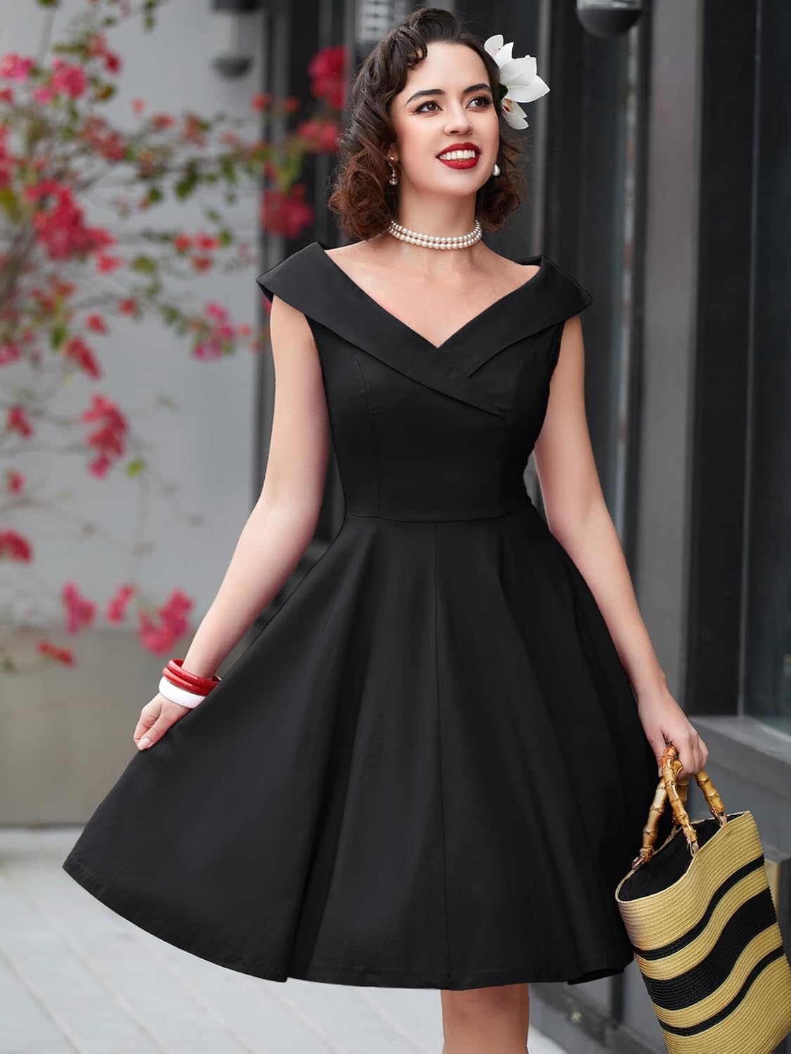 • Features – Fancy Sleeveless, Retro V Neck, A-line Style, Knee Length Swing Dress, A Concealed Back Zipper.