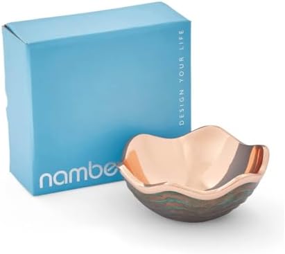 Namb Copper Canyon Bowl 4.5 Inch Decorative Copper Accent Dish with Verdigris Patina, Sculptural Scalloped Rim Design, Stylish Home Tabletop & Kitchen Decor Serving Piece