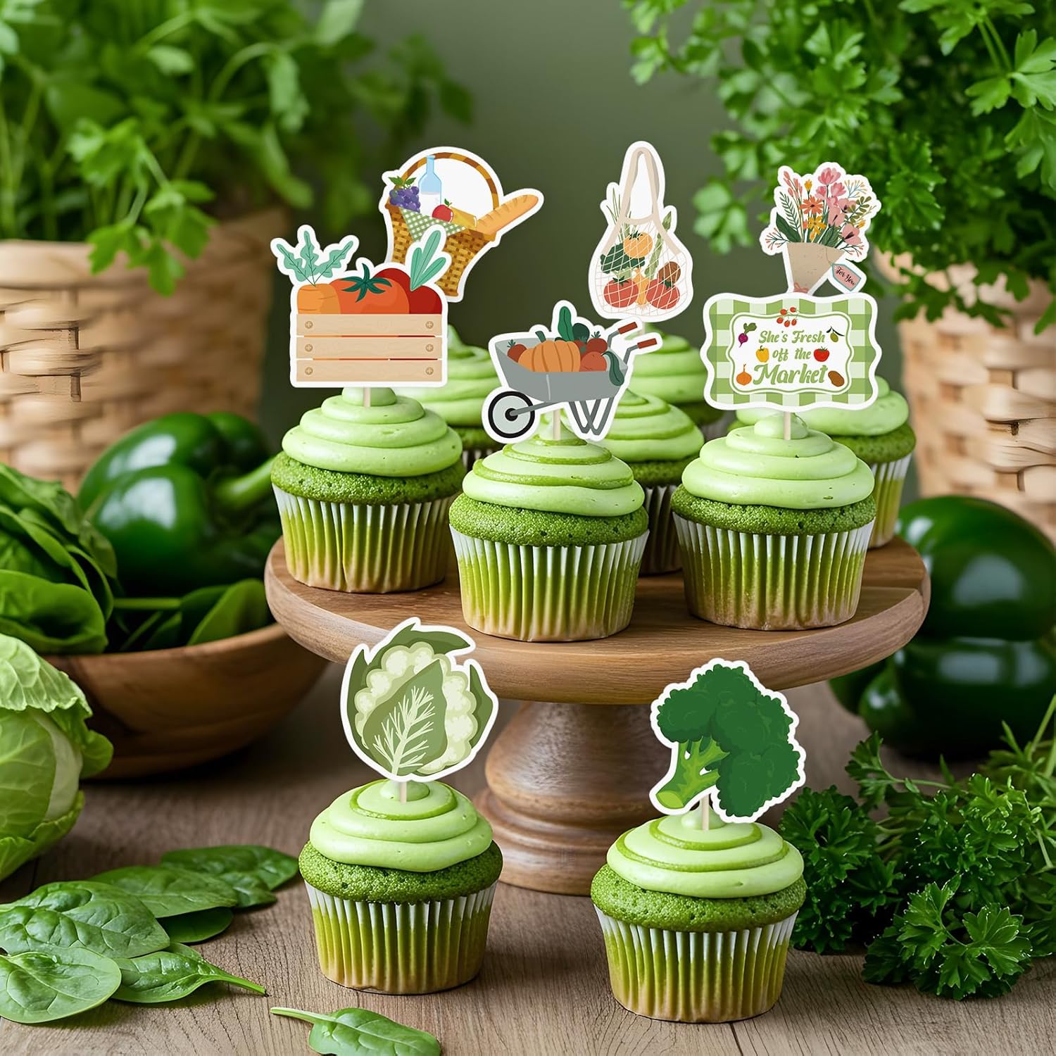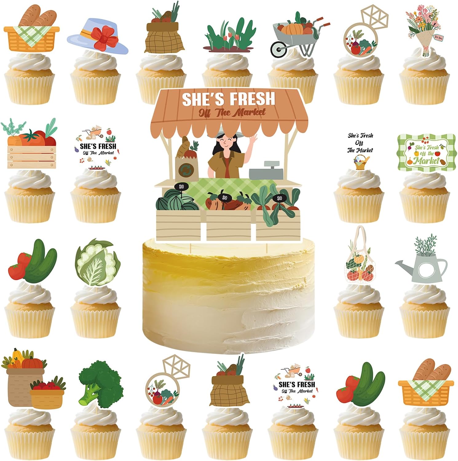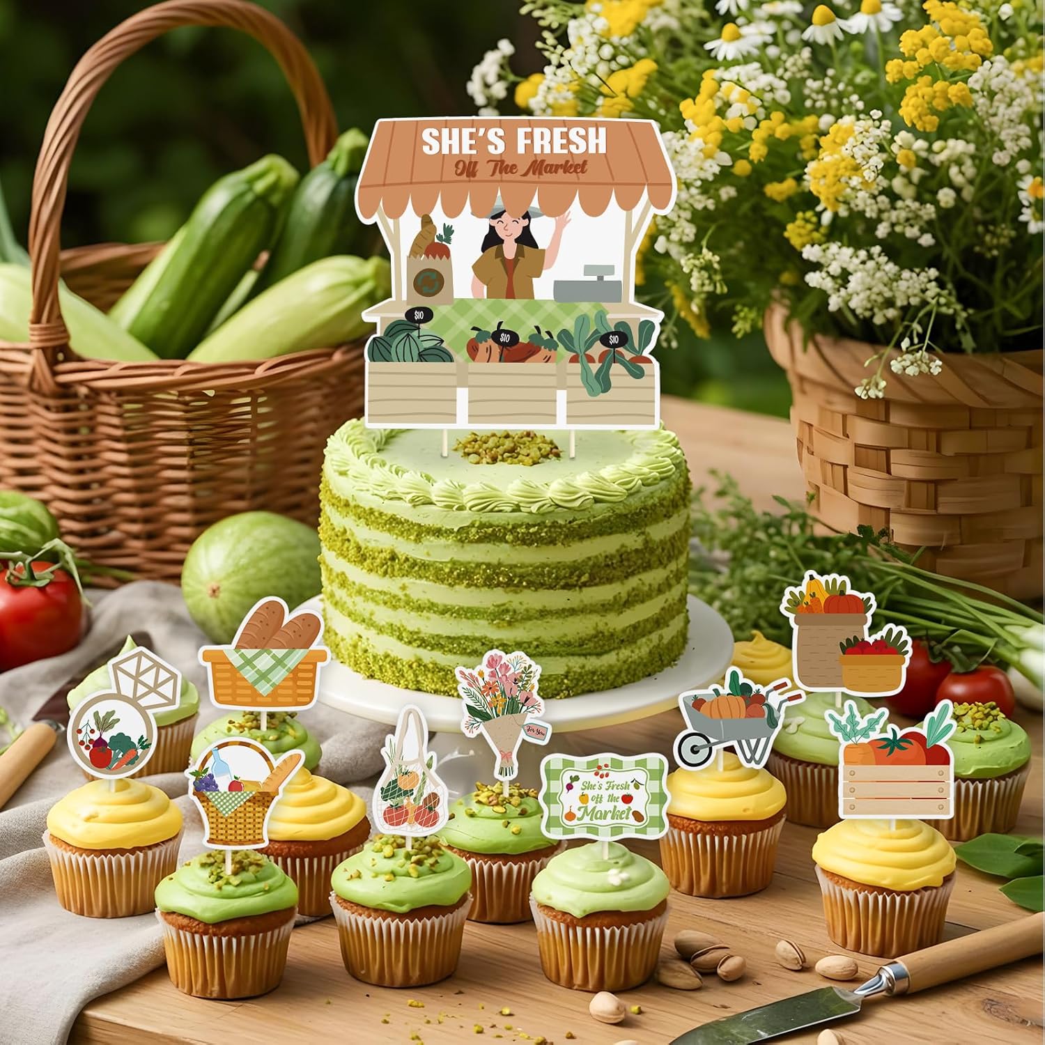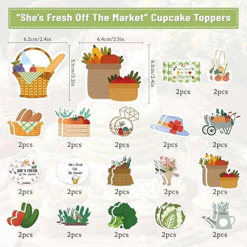 - Charming Design: Featuring 19 unique fruit & vegetable graphics—think strawberries, corn, pumpkins, and more—each topper is crafted for Fresh Off The Market bridal shower and farm-to-table bachelorette decor, adding playful vibrancy to your dessert display