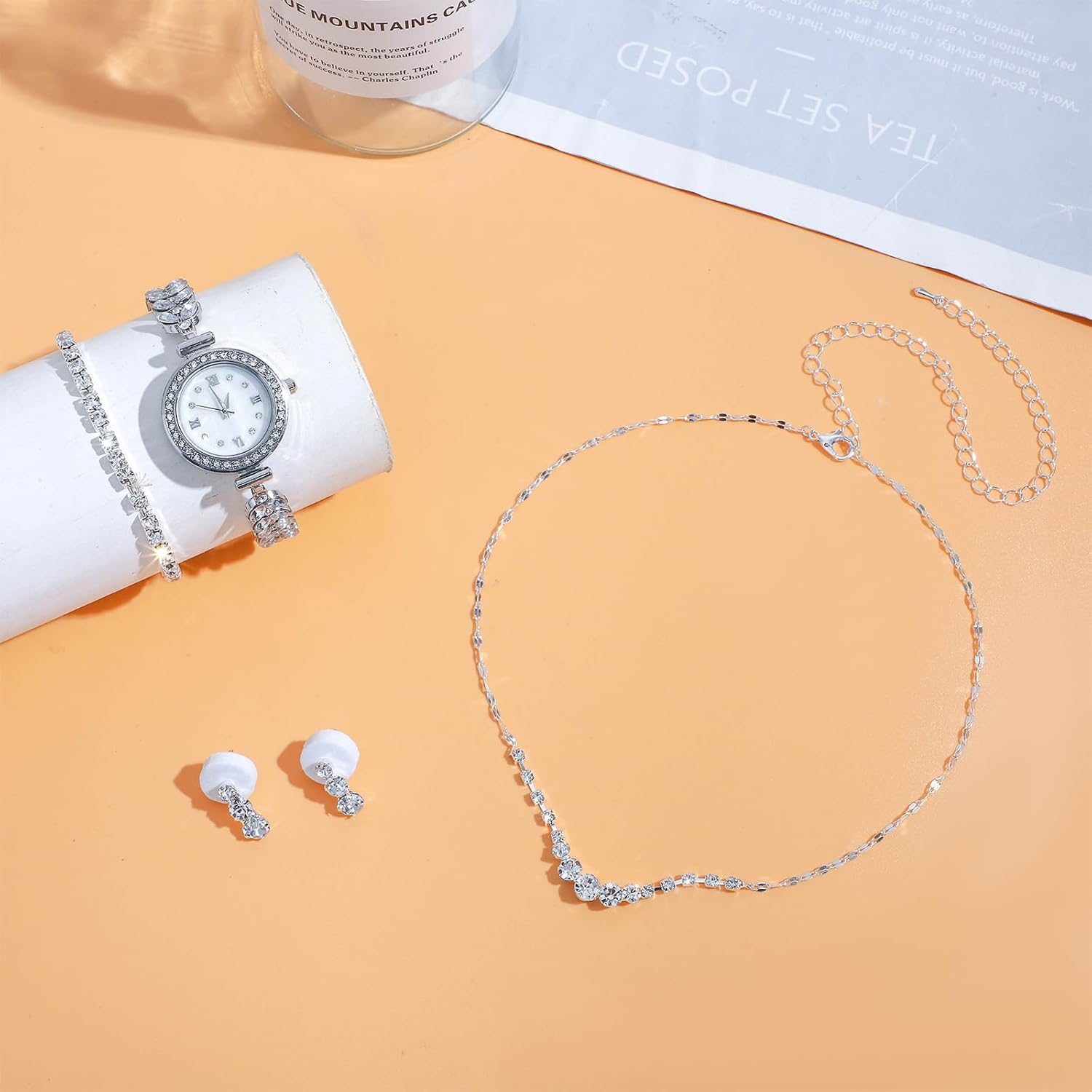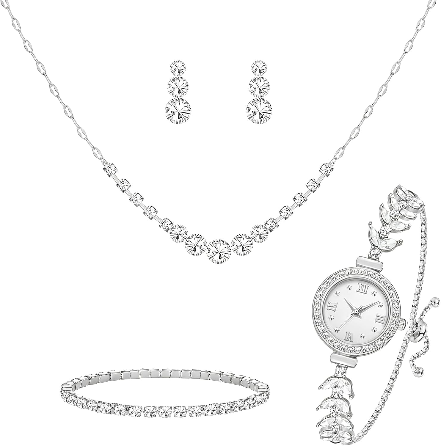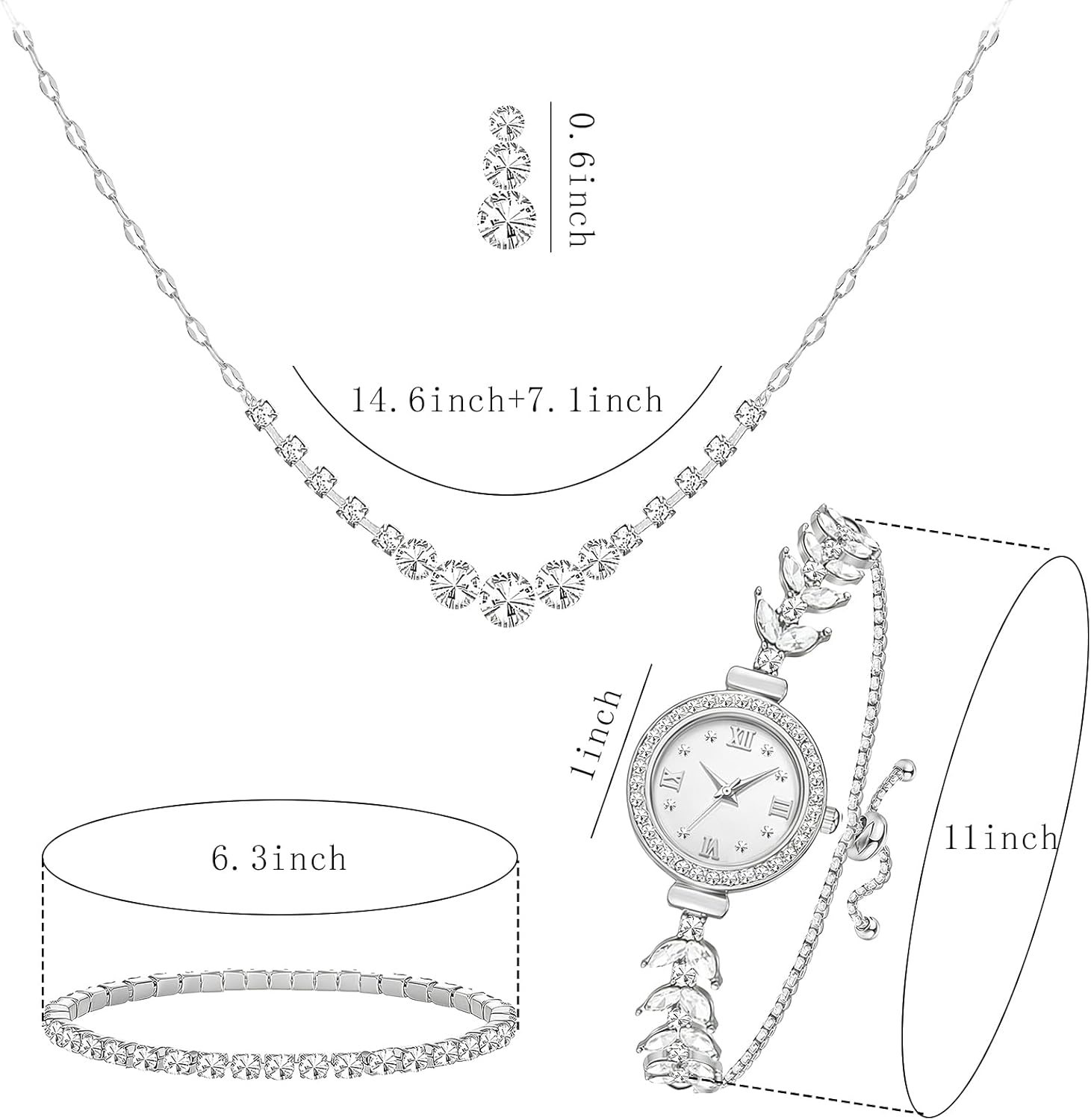 - Package included: One order includes 5 pieces crystal jewelry, including 2 pieces earrings, 1 piece necklace, 1 piece bracelet and 1 piece watch, each is very shiny, classic and luxury