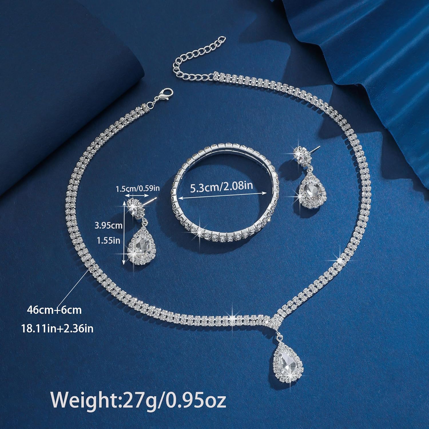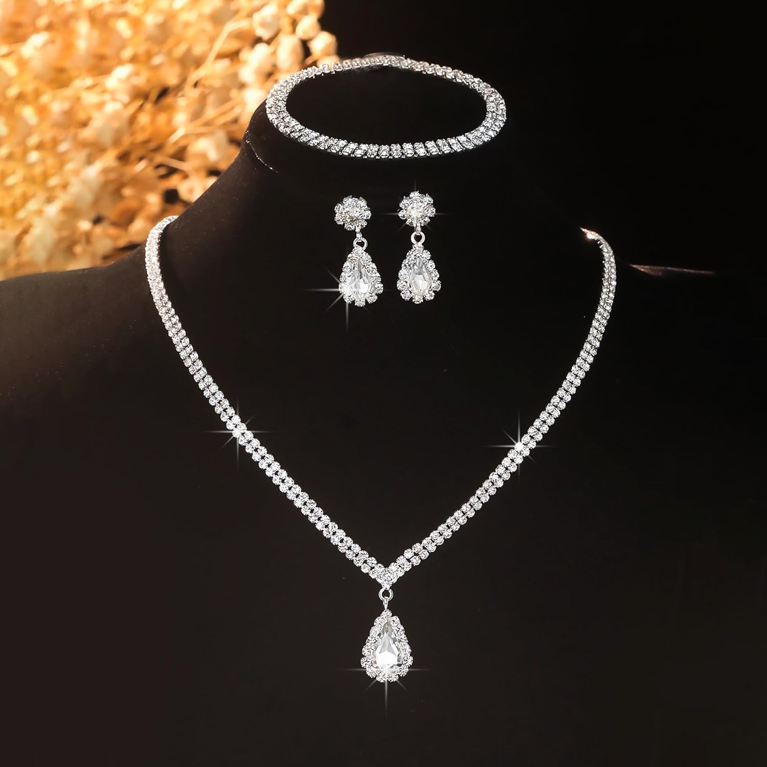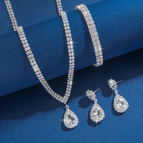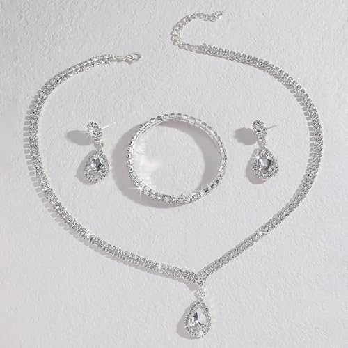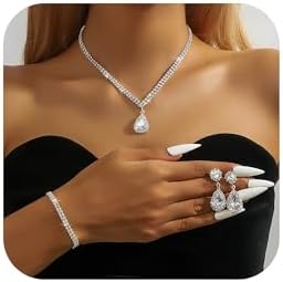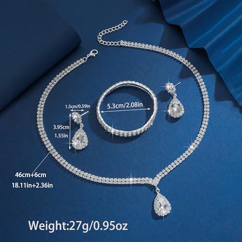 - Wedding Jewelry Set: Includes a necklace with a delicate teardrop pendant, matching earrings, and a bracelet – all designed to create a perfectly coordinated appearance. Everything you need to complete your wedding or formal ensemble comes in this convenient collection