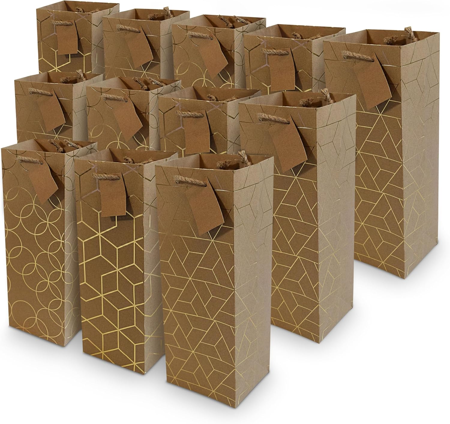- GEOMETRIC DESIGN – The bags feature an elegant geometric pattern that adds a modern touch to your gift presentation. The design stays intact without shedding or fading over time, ensuring the bag looks just as fresh as the first day you used it.