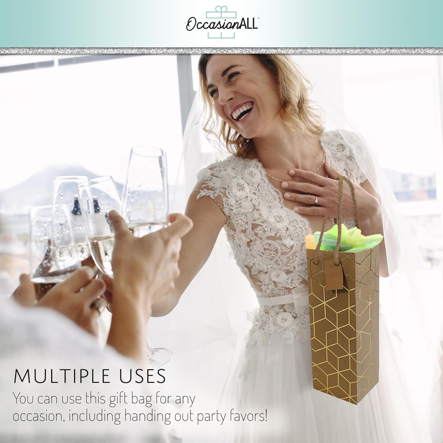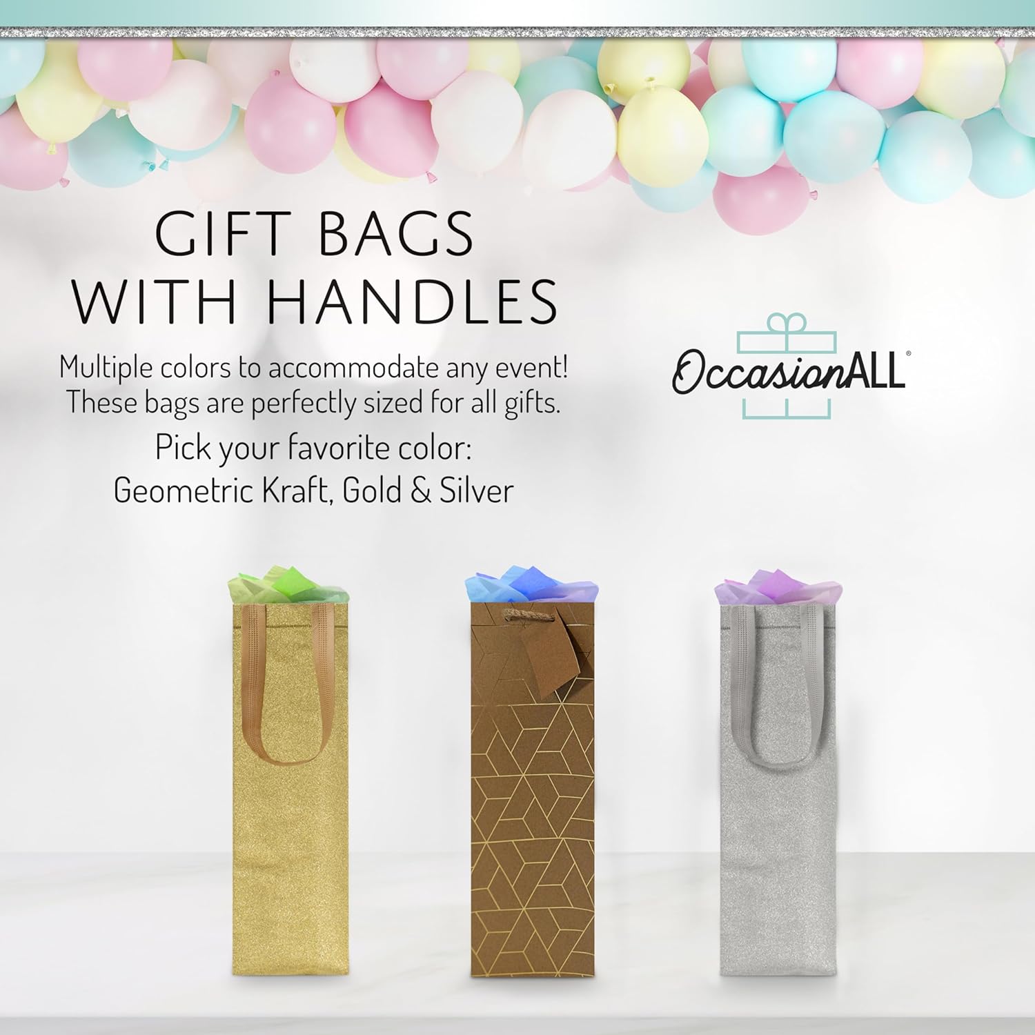 Use the gift bags for any occasion: Weddings, house warming parties, bachelorette parties, or holidays. Strong twisted rope handles that can hold up to one standard bottle of wine. High-quality paper bags can be reused multiple times or recycled.