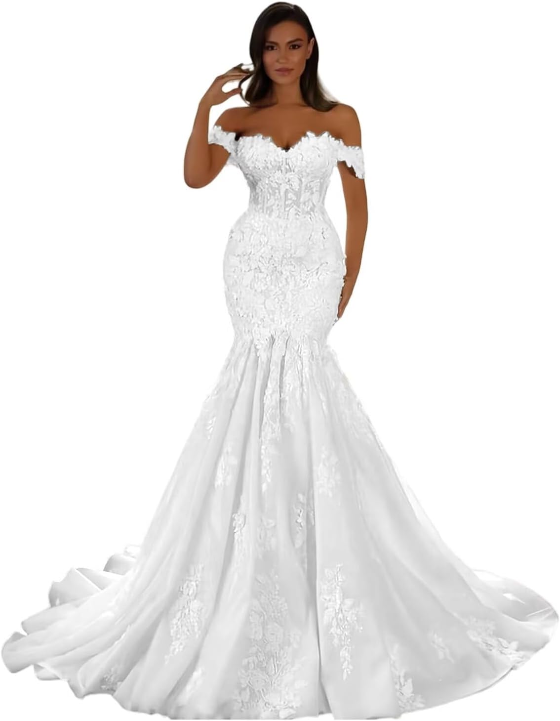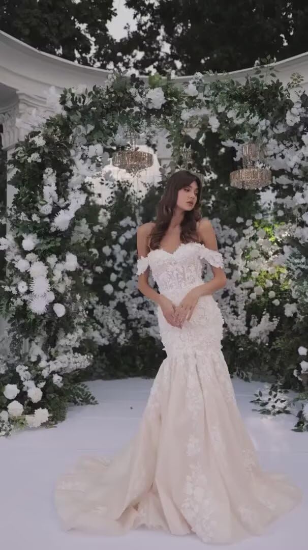 • Occasion:The laces wedding dress for bride perfect as mermaid wedding dresses,off the shoulder wedding dress with train,boho beach wedding dress 2025,ivory laces applique wedding dress for women boho,ivory wedding dress plus size,mermaid civil wedding dress,long bridal dress for women,anniversary,engagement,photoshoot,Christmas party,fall wedding guest dresses for women.