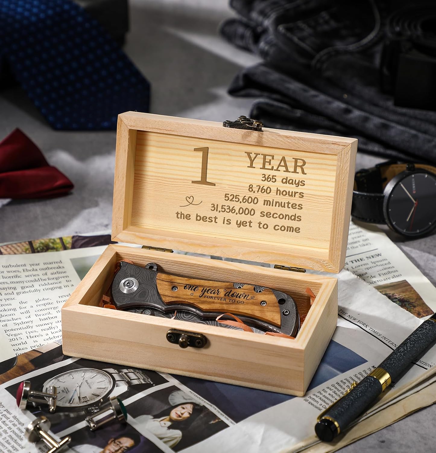 - One Year Anniversary Gifts for Him: this engraved pocket knife signifies bravery, strength, and perseverance; It’s an ideal gift for men symbolizing protection and companionship; The suitable way to celebrate a 1th wedding anniversary, this can be a thoughtful gift for fathers, husbands, boyfriends, sons, groomsmen, brothers, grandfathers, grandsons, friends, colleagues, or even bosses