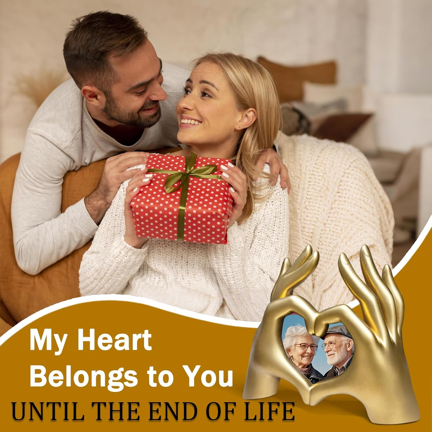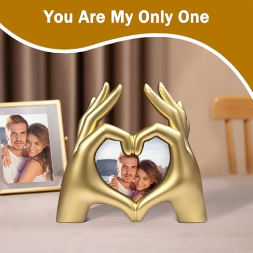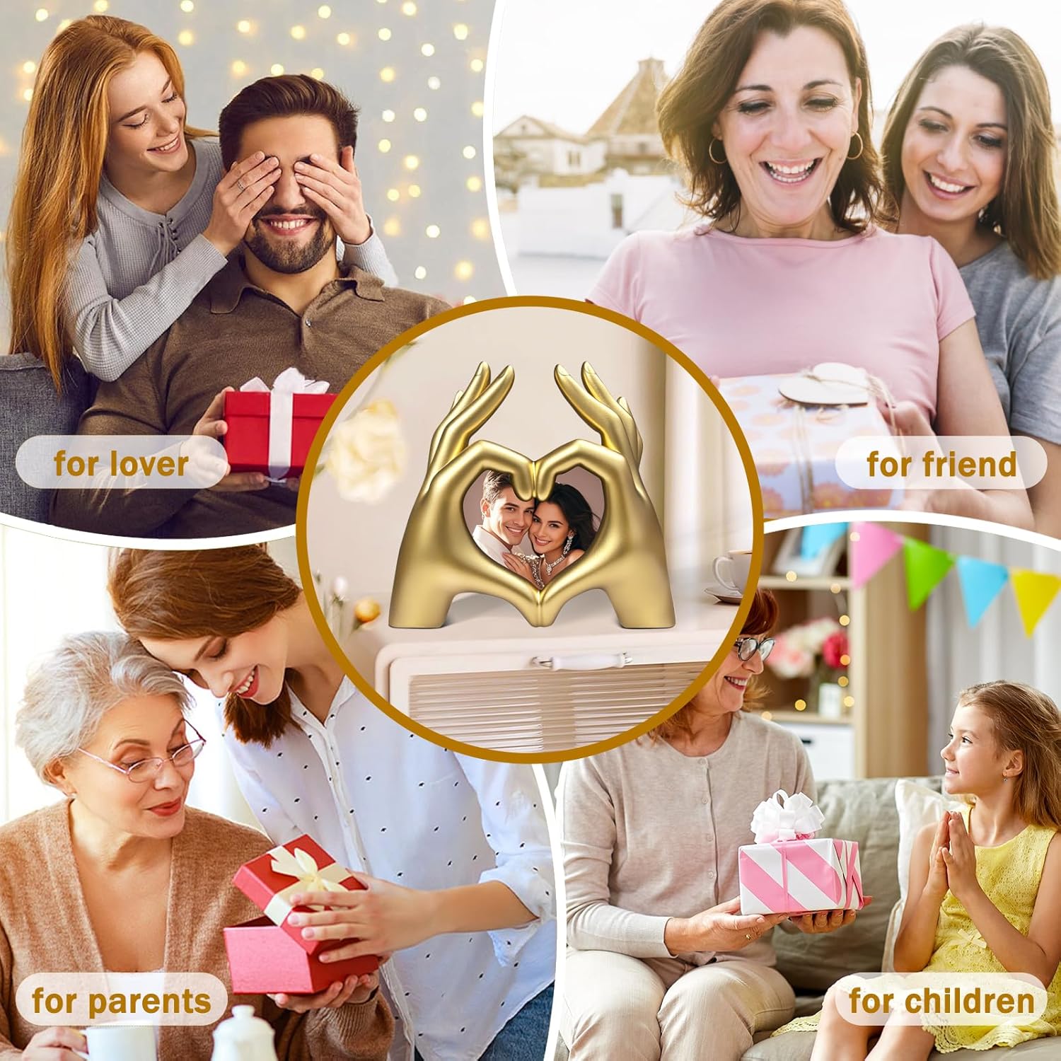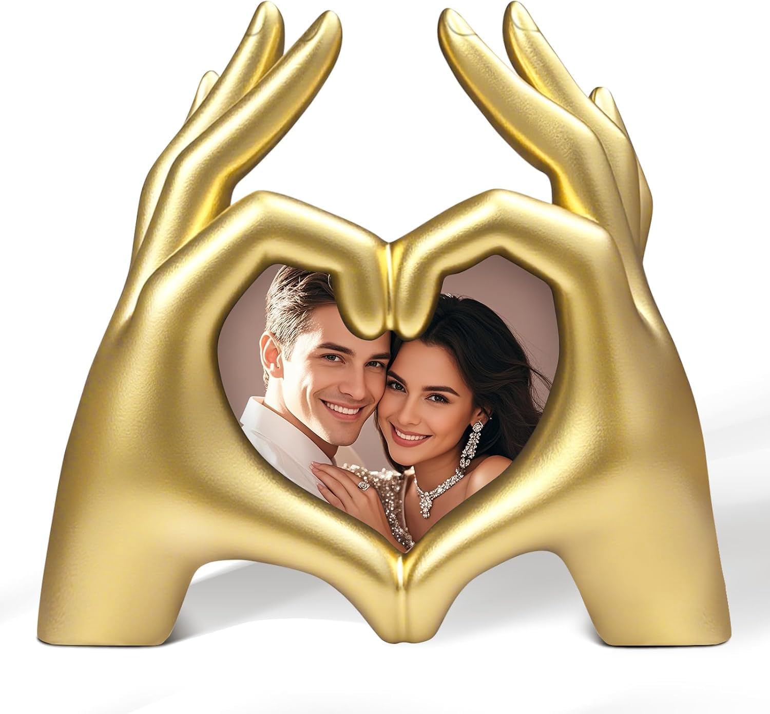 OOWDN Gold Heart Shaped Picture Frame, Heart Hands Sculpture with Photo Display, Unique Statue for Room Table Decor, Romantic Wedding Anniversary Xmas Gifts for Women, Wife, Couples (6.3×1.7×5.9)