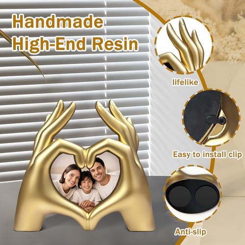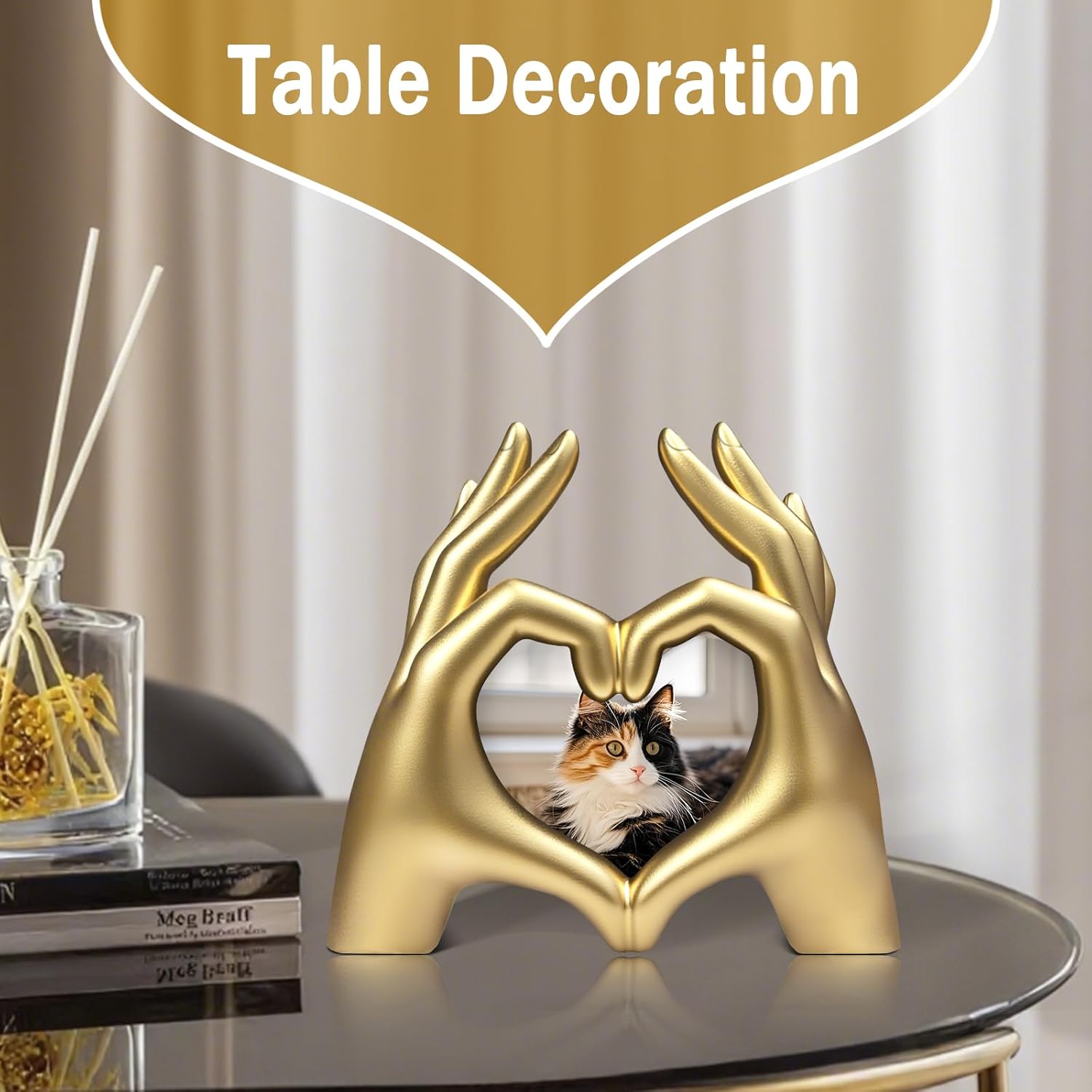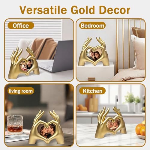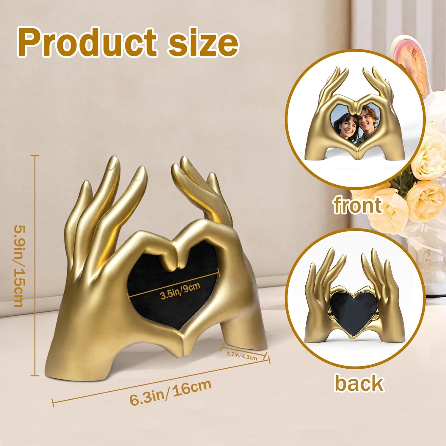 • Versatile Gold Home Accent: Heart shaped picture frame hand statue for living room,table, bedside cabinet,bathroom shelf,or as a bookshelf accent,office desk decor,TV stand accessory,fireplace decoration,or dining table centerpiece,gold decor love heart hands seamlessly fits into various settings,making it a boho style to your home decor