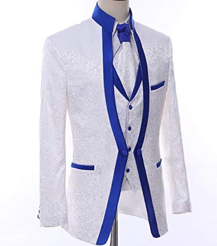 - Jacket: White Paisley Slim fit Single Breasted One Button Closure.Elegant stand Collar.Chest Pocket for Handkerchief Use, Soft Shoulder Pad for A Natural Shape,Two Flap Pockets.