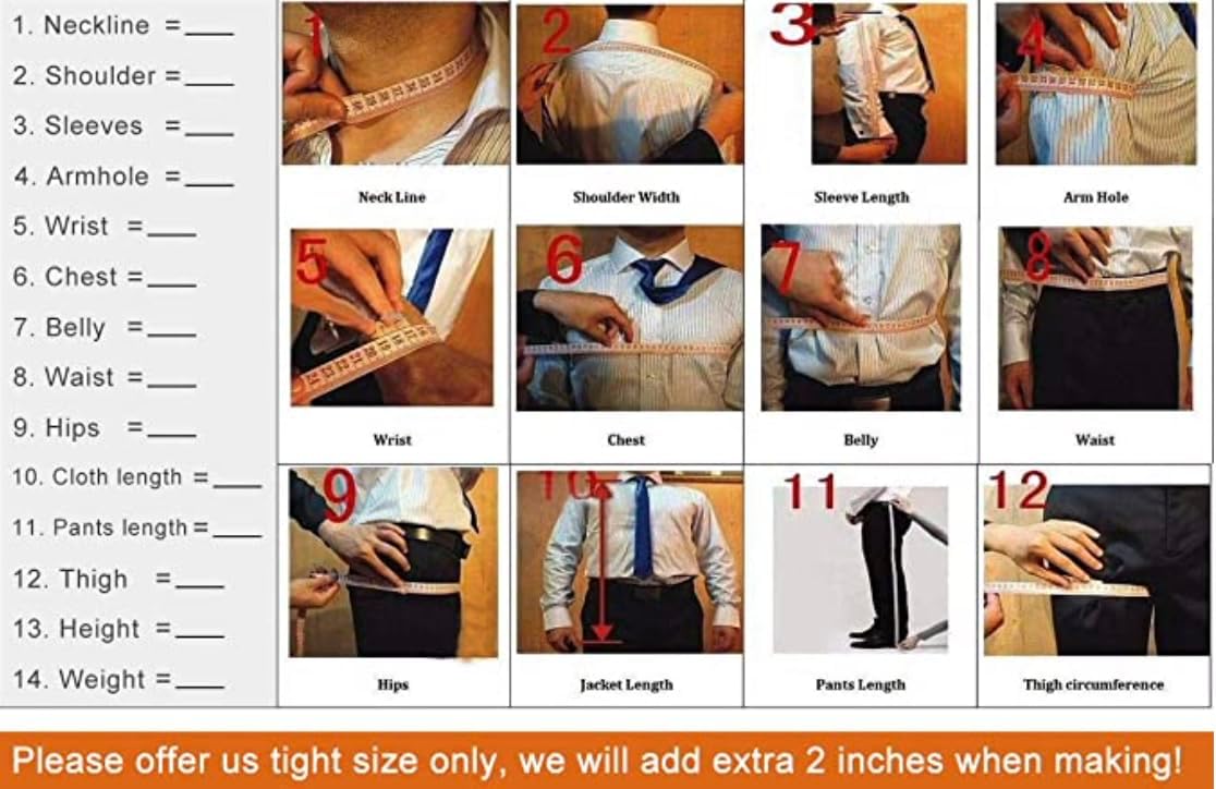 Please be sure to provide us with the CORRECT measurements to ensure a better fit. If it doesn’t satisfy you, custom suits are also RETURNABLE.