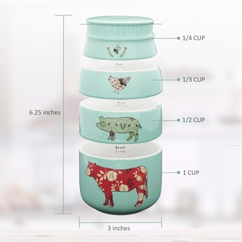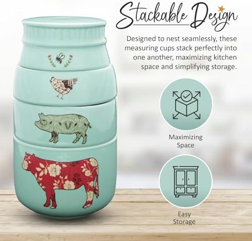 - Crafted with Care: Features 8 oz stackable measuring cups as a functional, delightful kitchen display – designed by Amylee Weeks. Securely packaged in a box, it comes with 1/4 cup, 1/3 cup, 1/2 cup, and 1 cup.