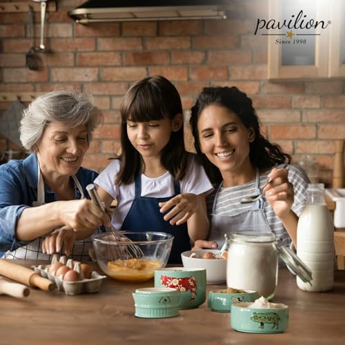 Charm your home kitchen with Pavilion Gift Company’s Bee, Chicken, Pig, and Cow’ series from the Live Simply collection designed by Amylee Weeks. Let this measuring cup bring a touch of farmhouse flair to your culinary preparations while still being functional. These 8 oz stackable stoneware measuring cups have varying sizes from 1 cup, 1/2 cup, 1/3 cup, up to 1/4 cup. It features a compact design in a vibrant teal color and is microwave-safe. Ideal for home use or as a gift.
