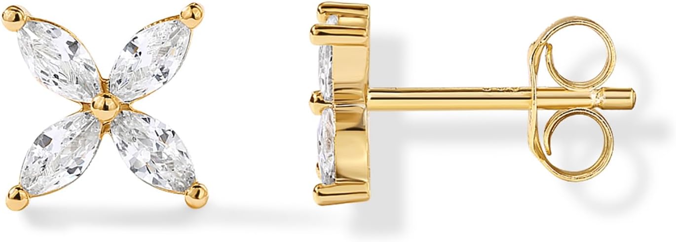 - PREMIUM QUALITY: Crafted with 14K yellow gold plating and featuring premium AAAAA cubic zirconia, these stud earrings for women are 100% hypoallergenic and safe for sensitive skin. Each earring is nickel-safe, lead-safe, and cadmium-compliant, crafted to meet strict U.S. and EU standards for lasting comfort and everyday wear, whether you’re at work, out with friends, or celebrating special moments.