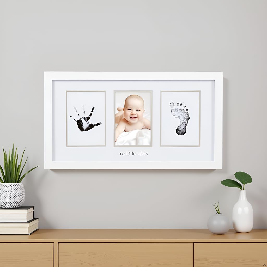 - Cherish Every Little Detail: Display your baby’s adorable handprint and footprint alongside their cutest newborn photo with this stylish Pearhead keepsake frame. It’s a beautiful, gender-neutral addition that fits perfectly in any nursery or living room.
