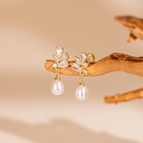 - ELEGANT AND LUXURIOUS: The pearl earrings feature a stunning combination of sparkling cubic zirconia accents and pearls, exuding timeless elegance with a touch of luxury.