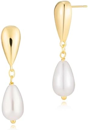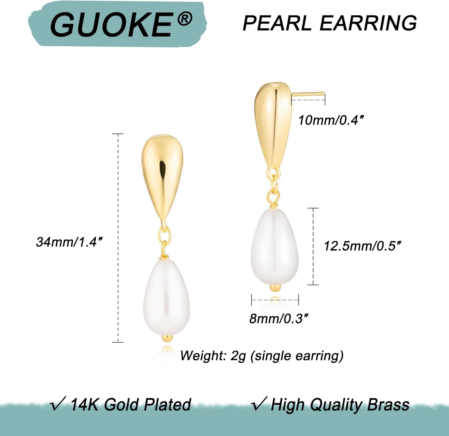 - 14K Gold Plated Pearl Earrings: Crafted with 14K gold plating and pearl accents, these gold pearl earrings shine with elegance. Their refined design makes them ideal for both everyday wear and formal occasions.