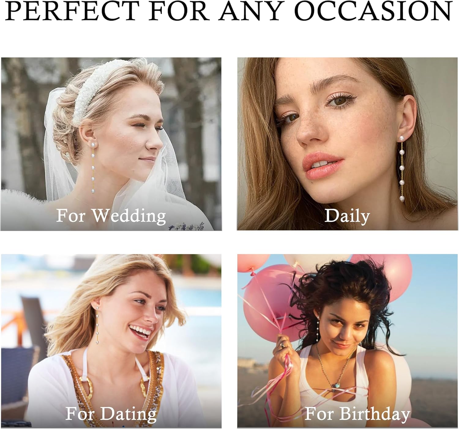 - Any-Occasion Accessory: Perfectly complement any outfit for engagement, weddings, prom, parties, and special occasions with these versatile long dangle earrings for women. Long pearl earrings are ideal for complementing any summer or engagement dress.The pearl studs earrings are great for daily wear, effortlessly matching various styles from jeans and t-shirts for a casual look to office wear or evening events. Addding a touch of elegance to all your ensembles with pearl drop earrings.