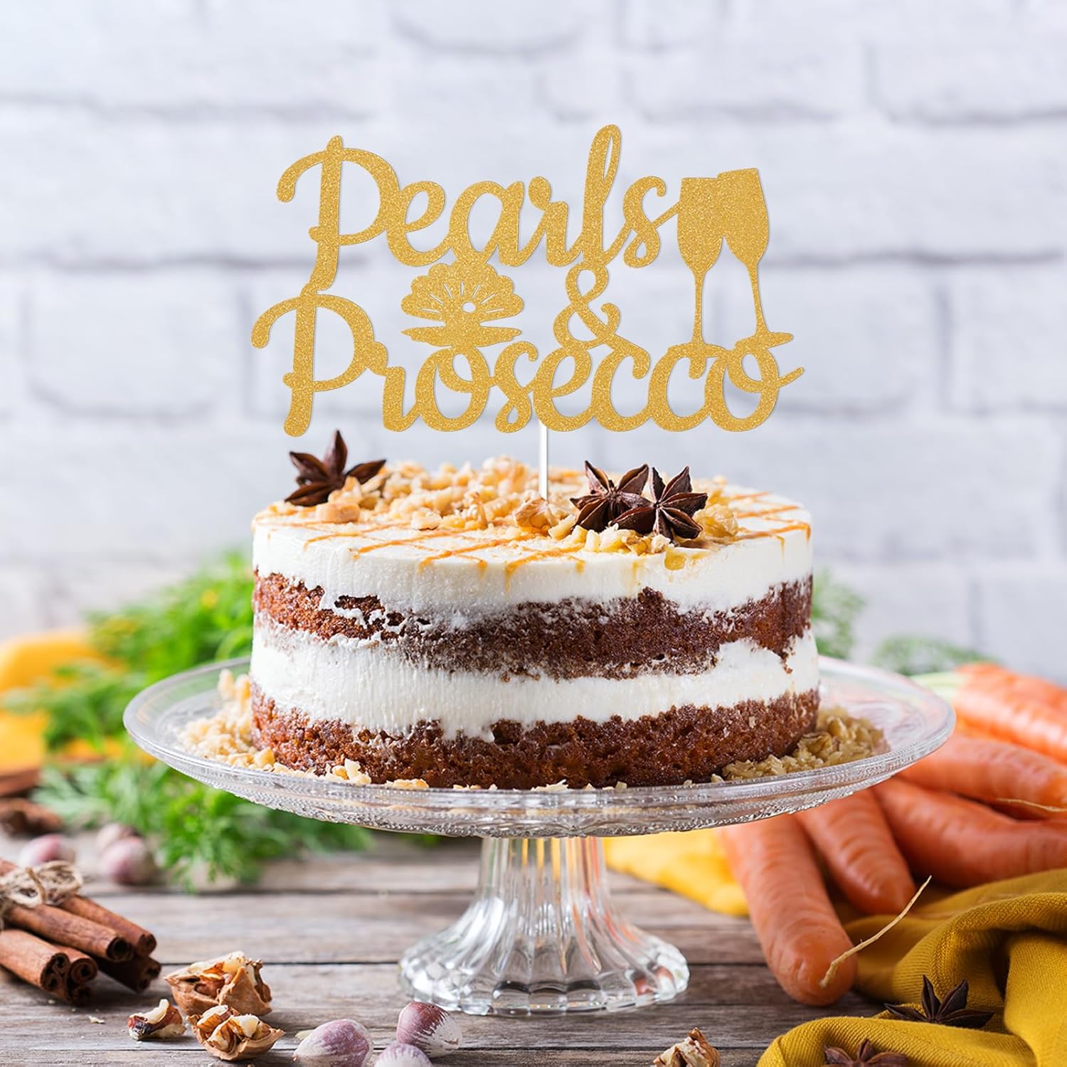 - 【What You Will Get】1pcs gold glitter “Pearls and Prosecco” Cake Topper, very suitable for bridal shower cake decorations. Add a lot of atmosphere to the party, unforgettable!
