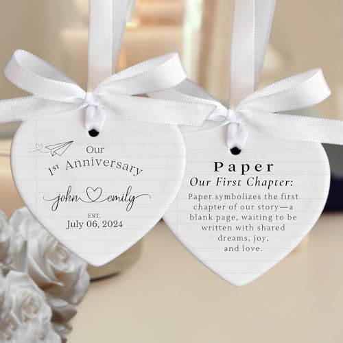 Celebrate love through every milestone with our personalized anniversary ornament a timeless keepsake designed to honor any year of marriage. Customized with your names, wedding date, or a heartfelt message, it beautifully captures the bond and memories youve built together. Whether celebrating your 1st, 5th, 10th, or 50th anniversary, this elegant ornament serves as a lasting reminder of love and commitment. Display it on your Christmas tree or keep it year-round as a romantic symbol of your shared journey. Ideal for couples, husbands, and wives, it makes a heartfelt anniversary or wedding gift that will be cherished for years to come.