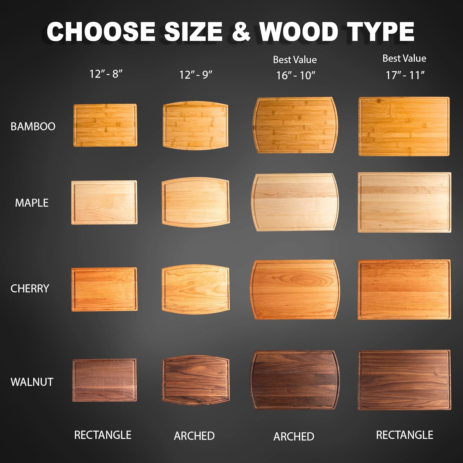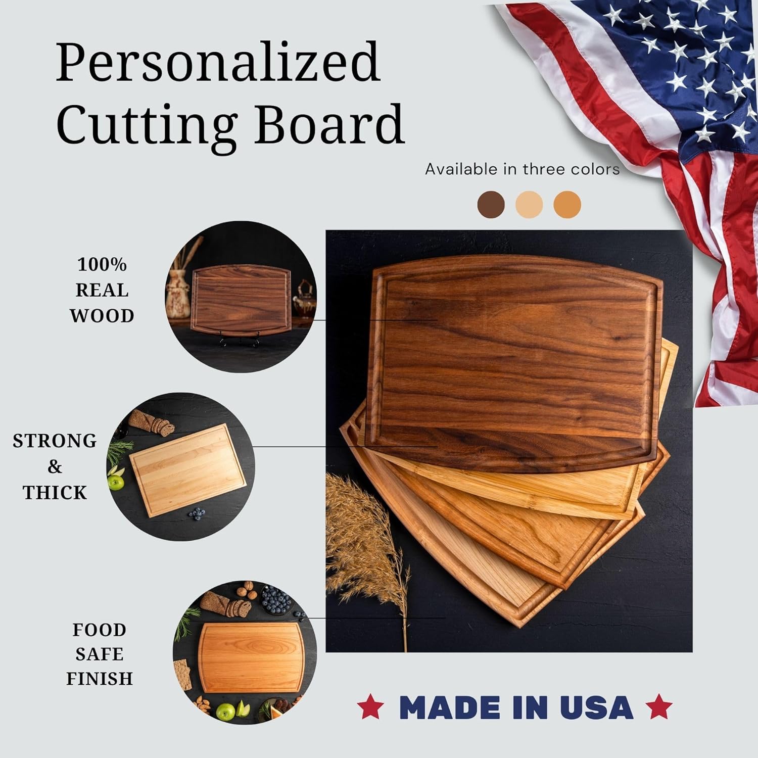 - High-Quality Craftsmanship: Each cutting board is handcrafted from premium hardwood—maple, bamboo, walnut, or cherry—offering unmatched durability, rich texture, and timeless elegance.