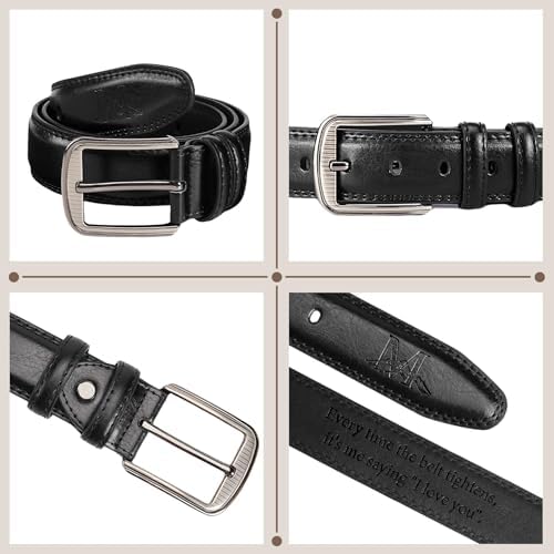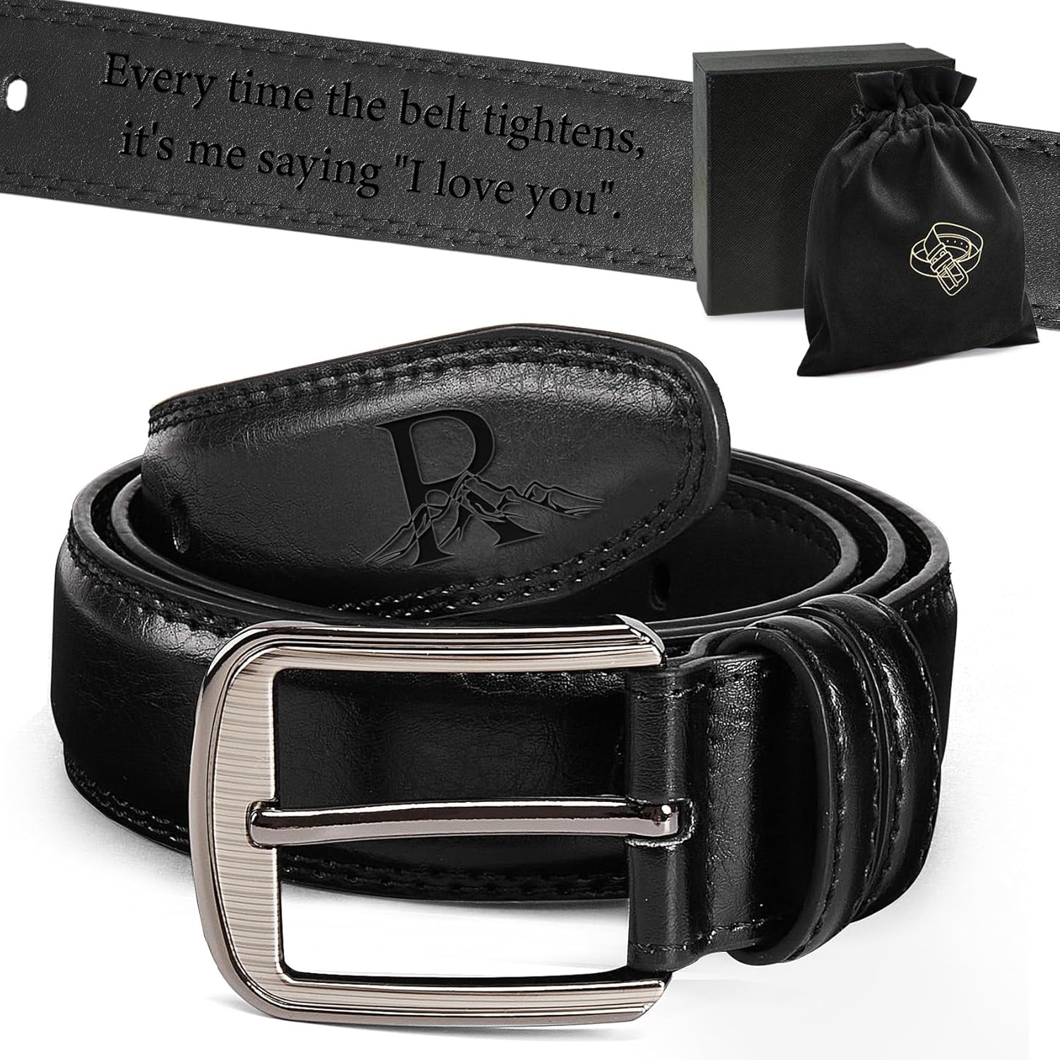 - 💝【Personalized Belts for Men】This mens belt features custom embossed initials and a heartfelt message: “Every time the belt tightens, it’s me saying I love you.” A unique and sentimental gift for birthdays, weddings, anniversaries, Christmas, Valentines, Fathers Day, or holidays. Personalized gifts for men, husband, boyfriend, lover, dad or son.